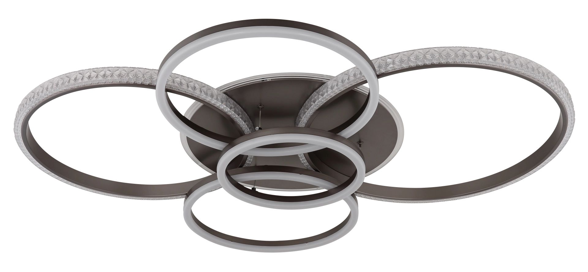 De LORELEI plafondlamp is de perfecte mix van modern design en elegante functionaliteit, waardoor het een echte blikvanger is in elke ruimte. Met een uniek rechthoekig lichaam van antraciet matte gelakte metaal en vijf verspringende ringen van helder en opaal acryl, biedt deze lamp een harmonieuze lichtverdeling die bijdraagt aan een indrukwekkende sfeer. Met een royale lichtopbrengst van 3700 lumen creëert de LORELEI een heldere en uitnodigende ambiance, terwijl de kleurtemperatuur van 3000K zorgt voor een warm en aangenaam licht.