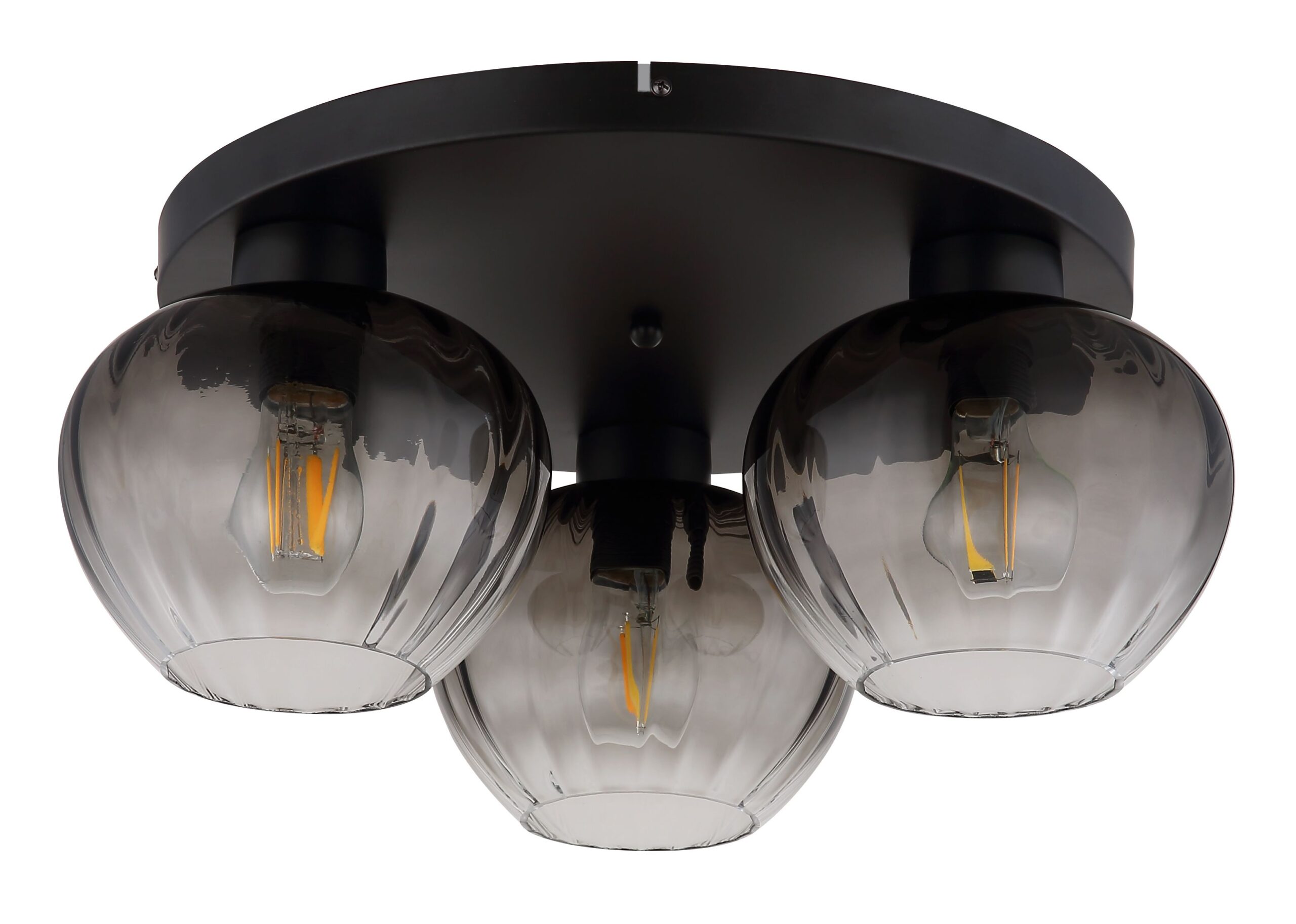 De TOY plafondlamp is een prachtig voorbeeld van hedendaags design en functionaliteit. Met zijn unieke ronde vorm van mat zwart metaal en de drie bolvormige geribbelde glazen in een rookkleurige afwerking, voegt deze lamp een elegant accent toe aan iedere ruimte. De combinatie van strakke geometrische lijnen en een stijlvolle afwerking maakt de TOY een echte eyecatcher die zowel in de woonkamer als in de eetkamer of boven de keukentafel perfect tot zijn recht komt.