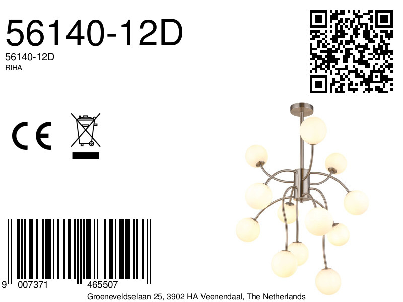 De RIHA plafonnière onderscheidt zich door zijn unieke ontwerp en hoogwaardige materialen. Met een ronde behuizing van mat nikkel geeft deze lamp een moderne en elegante uitstraling. De twaalf gebogen armen zijn elk voorzien van opal glazen bollen, wat resulteert in een harmonieuze en stijlvolle ambiance in iedere ruimte. Met een diameter van 700 mm en een lichtopbrengst van 310 lumen zorgt deze plafonnière voor aangename verlichting, perfect voor zowel woon- als eetruimtes.