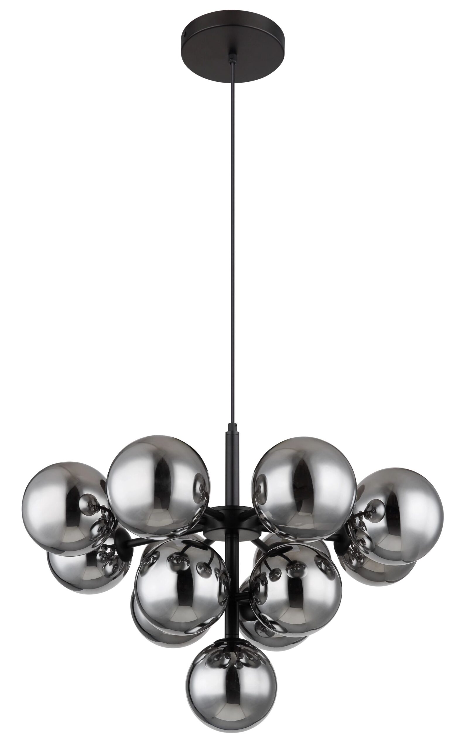 De hanglamp Globo is een opvallende ronde hanglamp die een moderne uitstraling aan elk interieur geeft. Met haar stijlvolle ontwerp en elegante rookglazen bollen creëert deze lamp een sfeervolle ambiance in elke ruimte. De lamp is vervaardigd uit zwart mat gelakt metaal, wat zorgt voor een strakke en eigentijdse look. De glazen bollen zorgen voor een prachtig lichtspel dat de gehele ruimte verwelkomt.