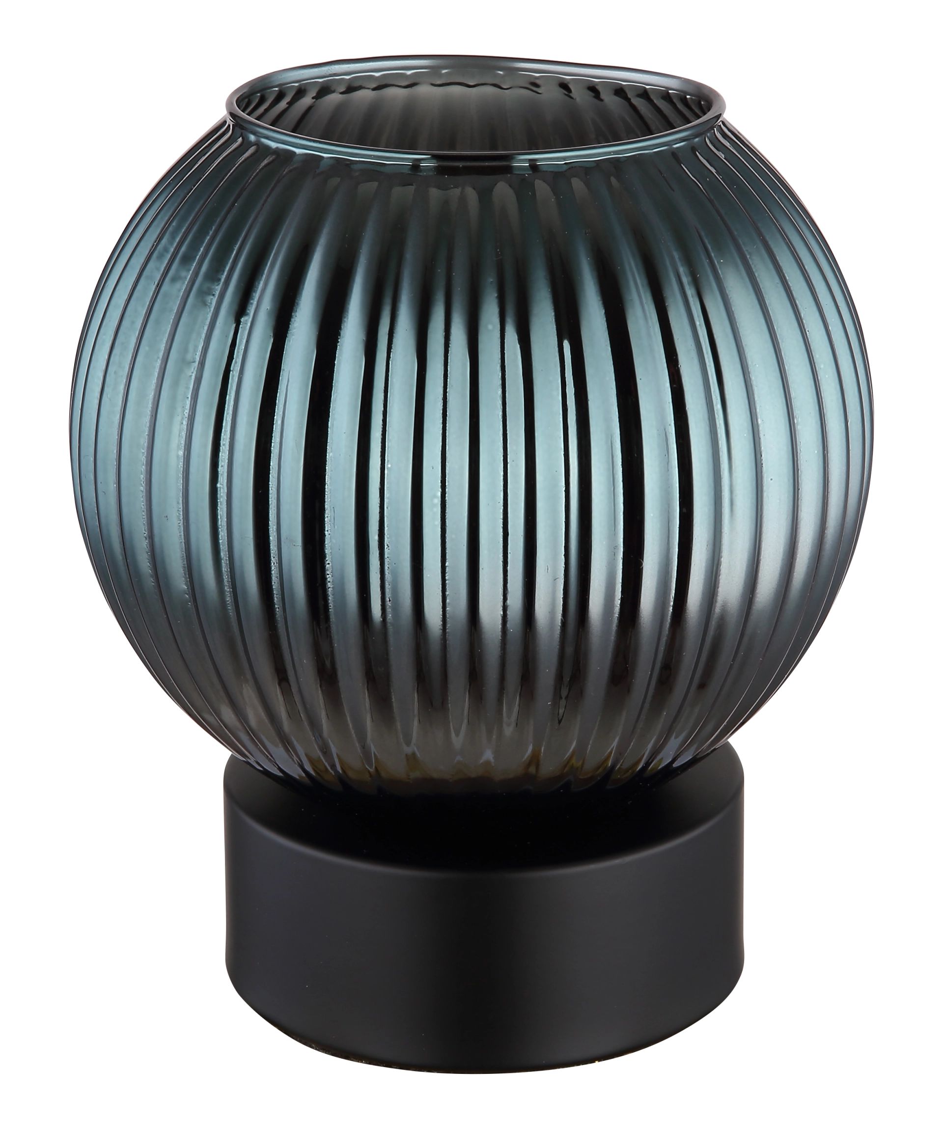 Deze moderne tafellamp met een geribbelde glazen bol is een elegant en eigentijds verlichtingselement dat jouw interieur naar een hoger niveau tilt. Het ontwerp in mat zwart, gecombineerd met een stijlvolle glazen bol in petrolkleur en een witte accentrand, zorgt voor een luxe en trendy uitstraling. De E27-fitting maakt de lamp geschikt voor verschillende lichtbronnen, zodat je kunt genieten van een aangename verlichting in elke ruimte.