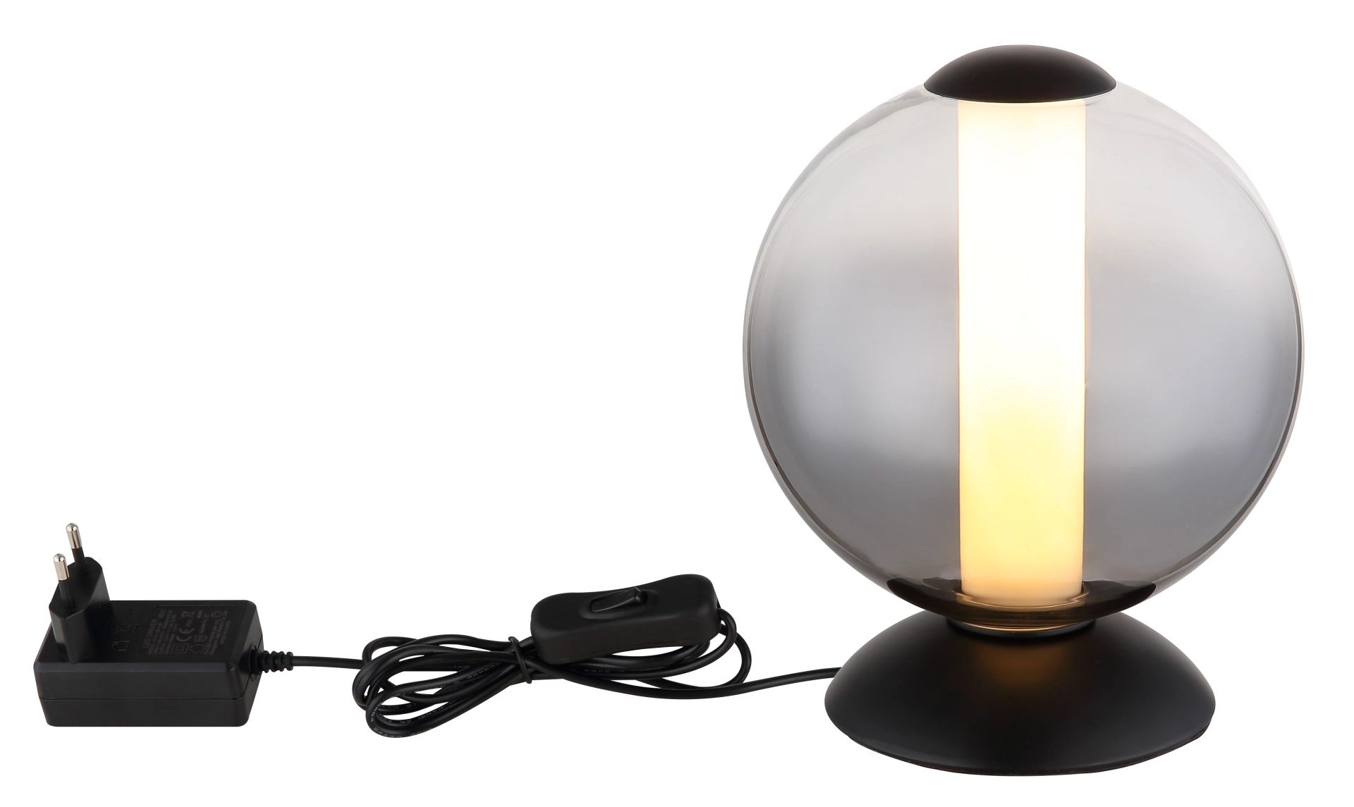 De LACY tafellamp is de perfecte symbiose van modern design en praktische verlichting, verpakt in een compact en stijlvol formaat. Met een ronde behuizing van mat zwart metaal en een rookkleurige glazen bol, waarin een opalen acrylcilinder is verwerkt, biedt deze lamp een zachte en gelijkmatige lichtverdeling. De bolvormige glazen schaduw is niet alleen een prachtig visueel accent, maar ook functioneel, aangezien het de LED-lampen optimaal beschermt en tegelijkertijd een warme lichtsfeer creëert.