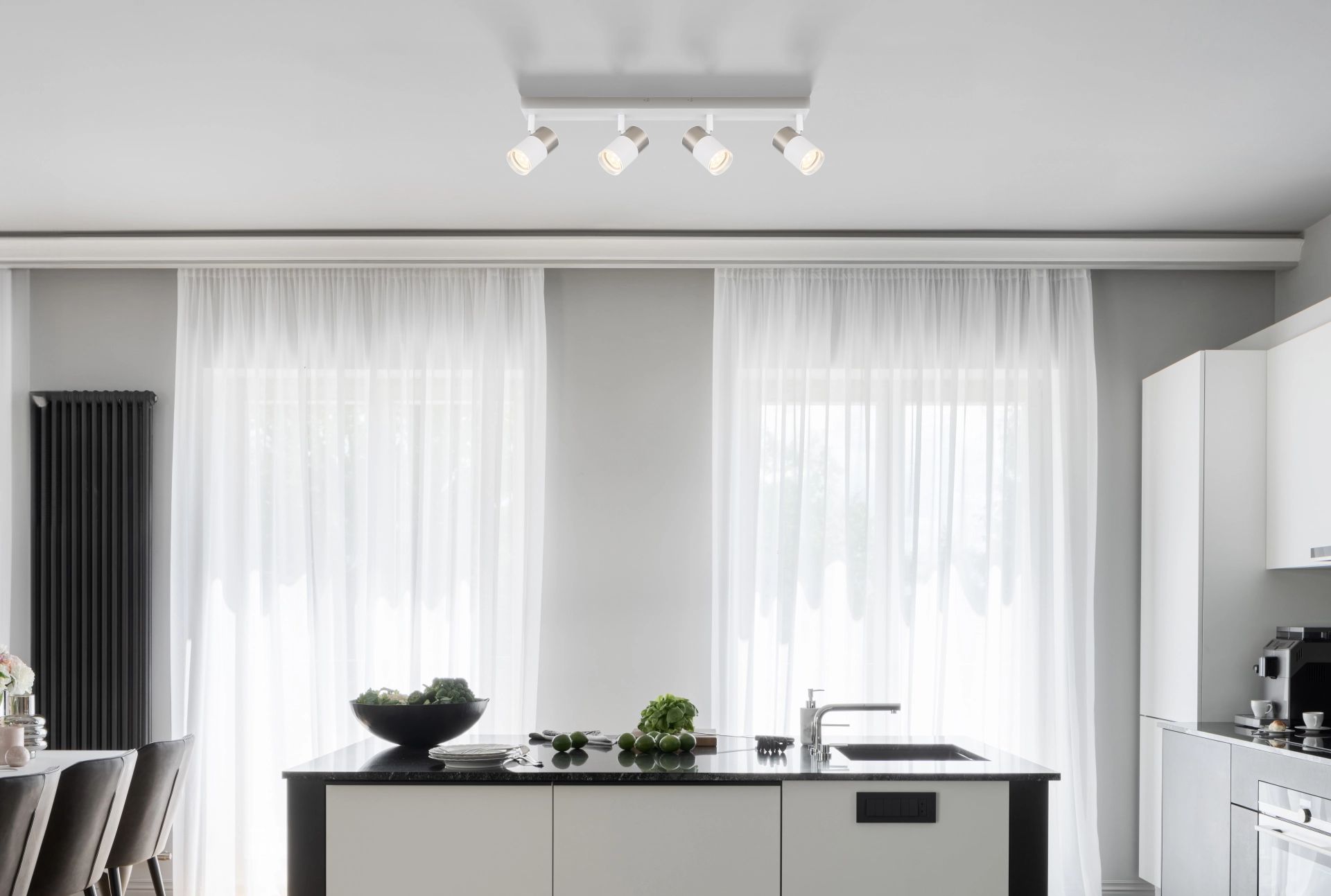 De elegante lampenkappen in mat nikkel en wit, samen met transparant plastic, accentueren het moderne ontwerp. Met een afmeting van 560 mm in lengte en 60 mm in breedte is deze spotlight ideaal voor elke wand. Upgrade jouw woonruimte met deze stijlvolle wandspot en geniet van een gezellige sfeer in een aantrekkelijk design.