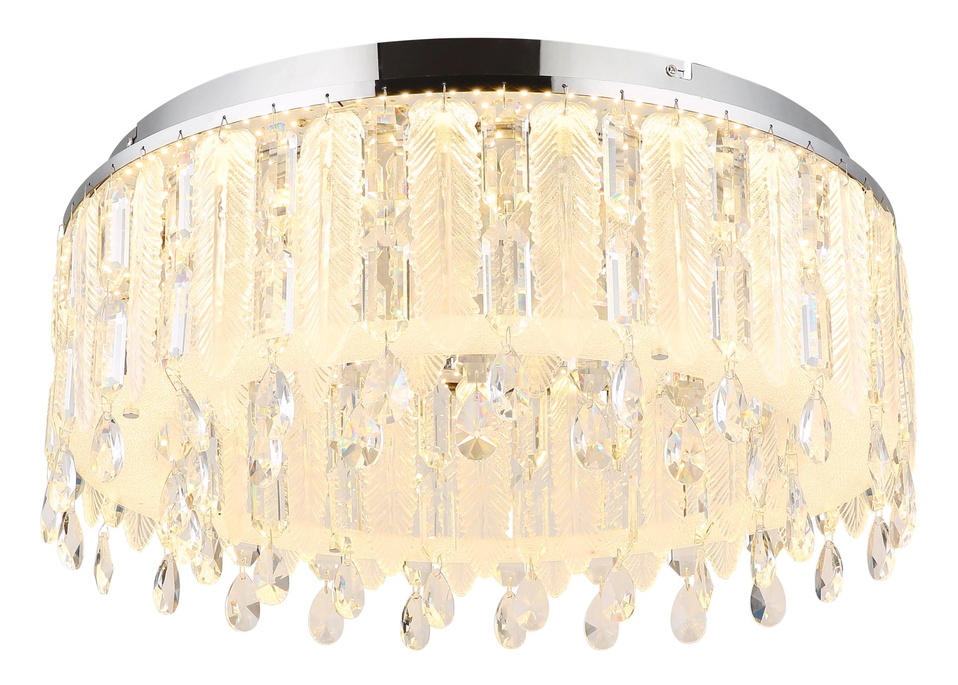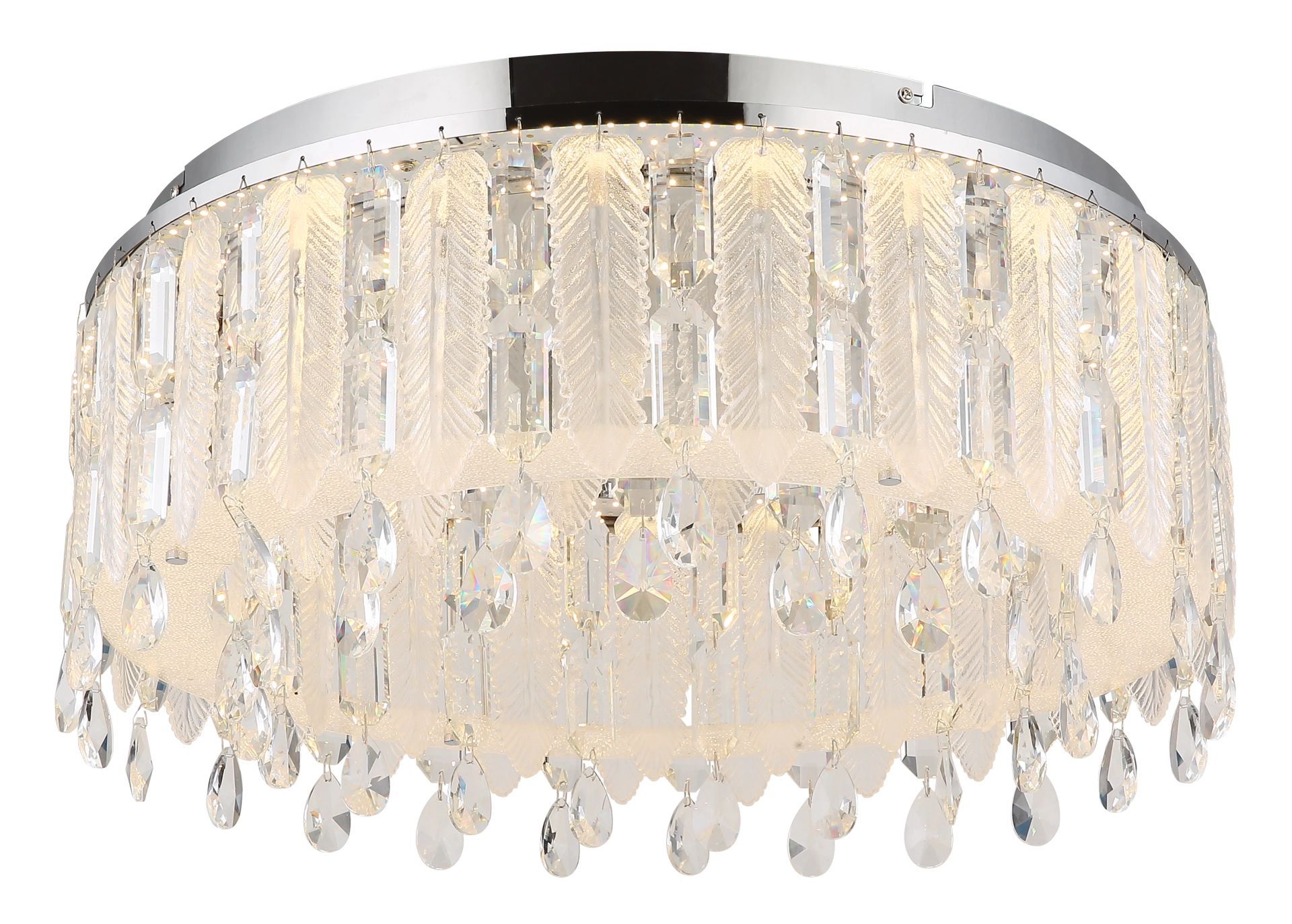 De luxueuze ronde plafondlamp plafondlamp Klunka voegt een vleugje elegantie toe aan elke ruimte. Met een chroomgeplateerde metalen afwerking en de schitterende K5 kristallen hangers straalt deze lamp glamour en verfijning uit. Met een royale diameter van 600 mm en een vermogen van 58 W biedt deze plafondlamp een krachtige lichtstroom van 3770 lumen, wat zorgt voor heldere en uitnodigende verlichting in uw interieur.