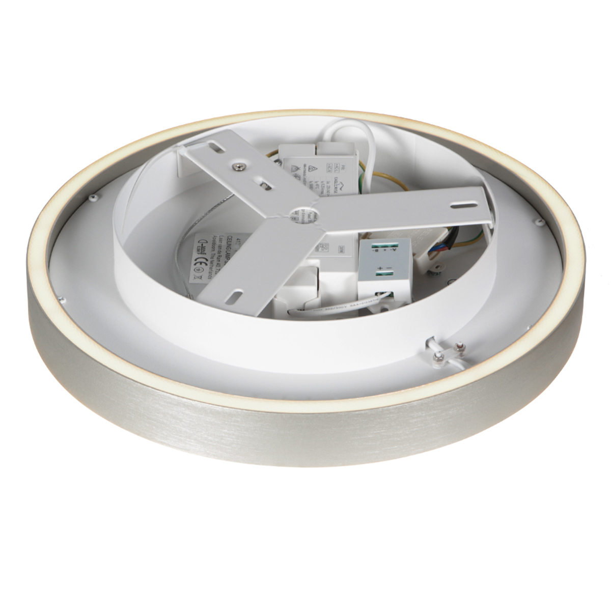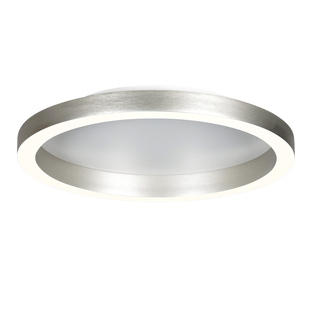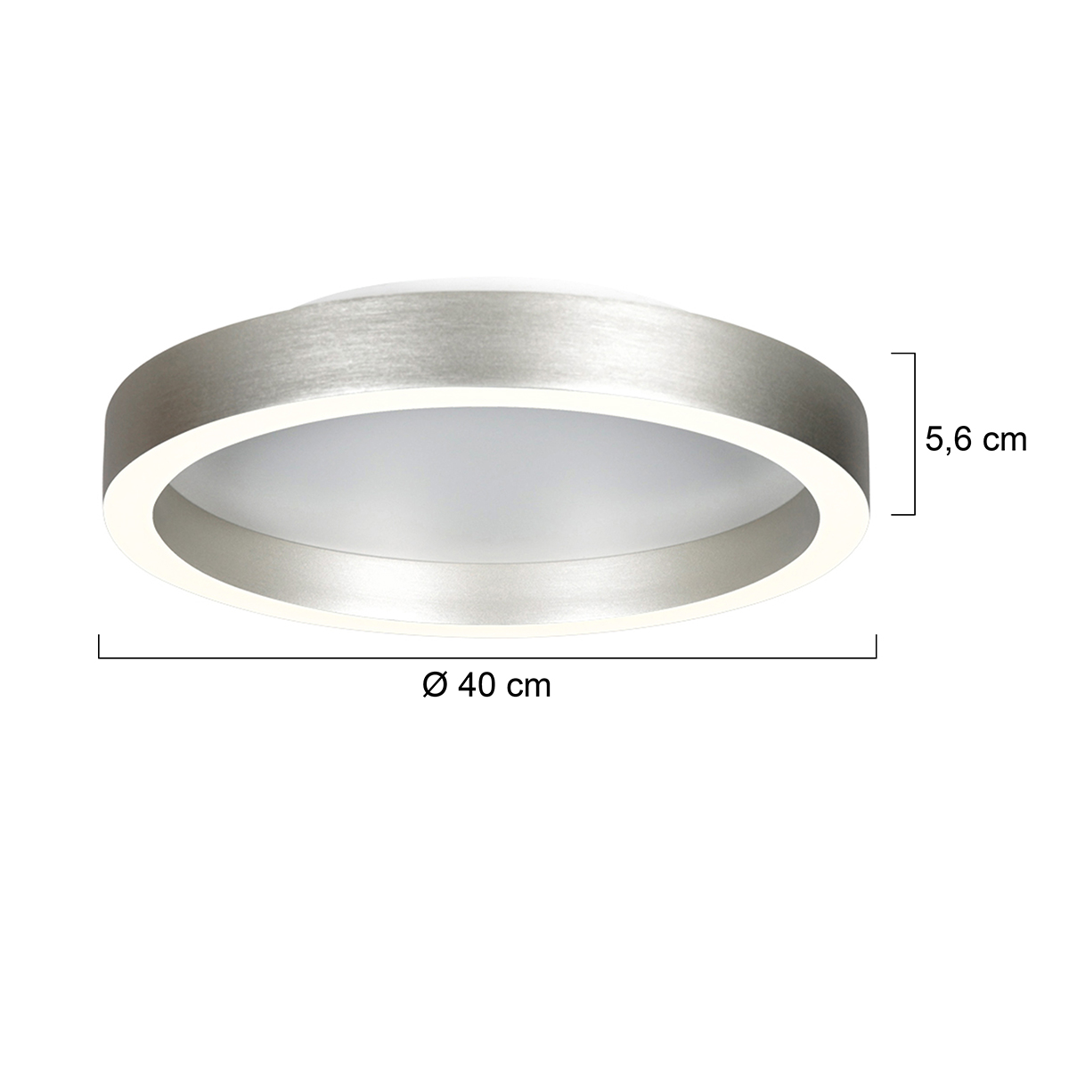 De Ringlux 4135ST is een moderne plafondlamp in geborsteld staal met een royale diameter van 40 cm. De vlakke, ronde vormgeving en de stalen afwerking geven de lamp een eigentijdse uitstraling die prachtig uitkomt in woonkamers, keukens of grotere hallen. De geïntegreerde LED ring van 30 watt geeft direct licht naar beneden, terwijl een extra LED ring van 6 watt zorgt voor een subtiele gloed richting plafond. Samen leveren ze een krachtige lichtopbrengst van circa 3600 lumen in een warme lichtkleur van ongeveer 2700 Kelvin.