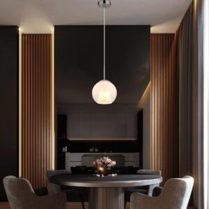 De ronde hanglamp BARRY is een prachtige aanvulling voor elk interieur. Met een elegante glazen bol van 200 mm in diameter voegt deze lamp een moderne touch toe aan uw ruimte. Het ontwerp, gekenmerkt door een body van mat nikkel en verchroomd metaal, straalt contemporane stijl uit. De opale glazen bol met een verfijnd gradiëntontwerp zorgt voor een harmonieuze verspreiding van het licht en creëert een warme en uitnodigende sfeer.