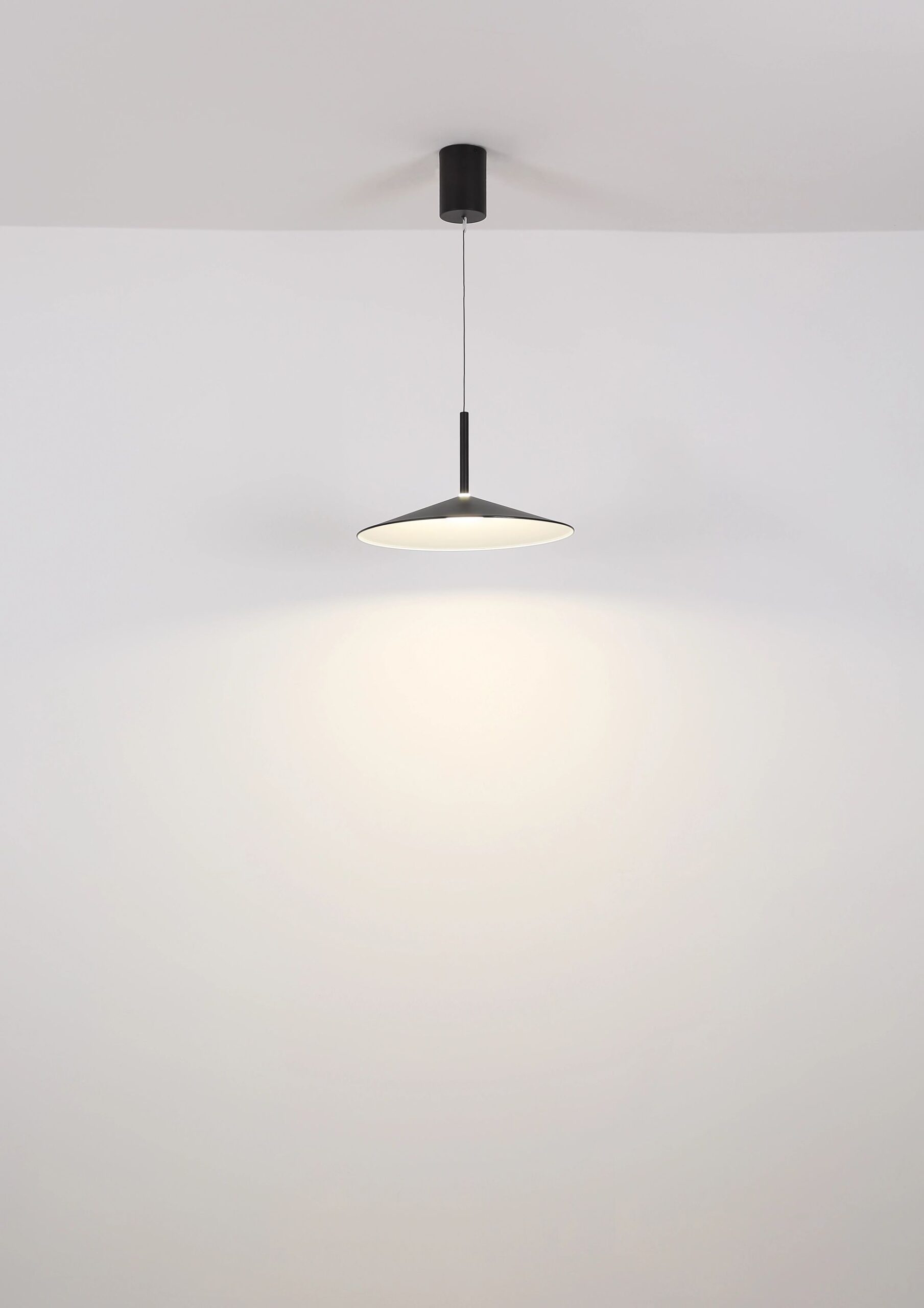 Mat zwarte ronde pendellamp met opaalwitte acryl Lampone