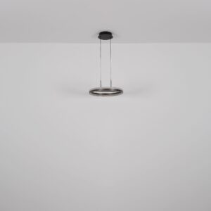Ontdek de ronde hanglamp DELLA, een stijlvolle toevoeging aan jouw interieur. Deze lamp is ontworpen met een elegant matzwart metalen frame dat een moderne uitstraling biedt. De ringvormige kap is gemaakt van donkergrijs aluminium, opaalplastic en heldere plastic kristallen. Dit zorgt voor een prachtig lichtspel dat de ruimte vult met sfeervol licht. De DELLA hanglamp is uitgerust met energiezuinige LED-technologie en een CCT-functie waarmee je de kleurtemperatuur eenvoudig kunt aanpassen van 3000 K tot 6000 K. Zo creëer je de perfecte ambiance, van warm en gezellig licht tot helder daglicht.