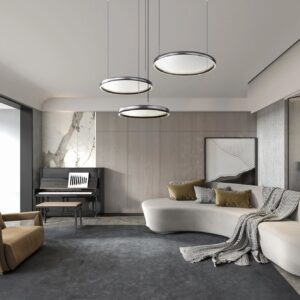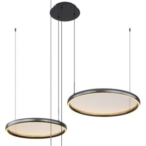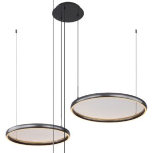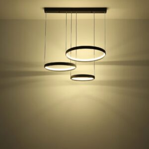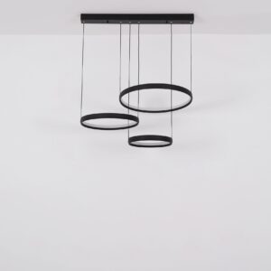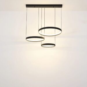 De rechthoekige hanglamp BRIGGS in matzwart is een opvallend verlichtingsobject dat elke ruimte een moderne uitstraling geeft. De lamp is ontworpen met drie ringen en een body van matzwart metaal, terwijl de kap van satinafgewerkt aluminium een stijlvolle afwerking biedt. Met een krachtige LED-verlichting die maar liefst 6800 lumen produceert, zorgt deze lamp voor een heldere en uitnodigende sfeer in uw interieur. De gelijkmatige lichtverdeling maakt de BRIGGS ideaal voor zowel woon- als werkruimtes.