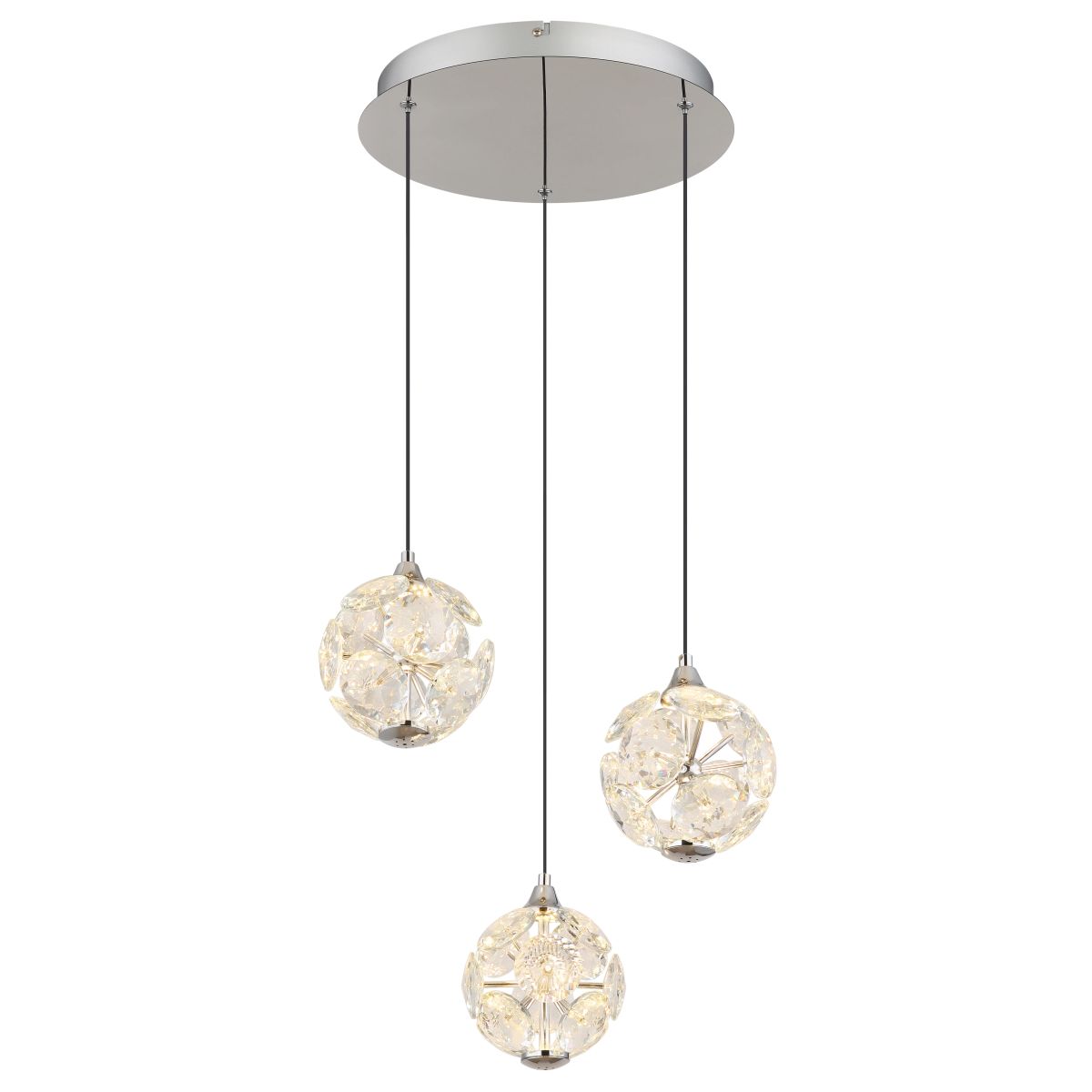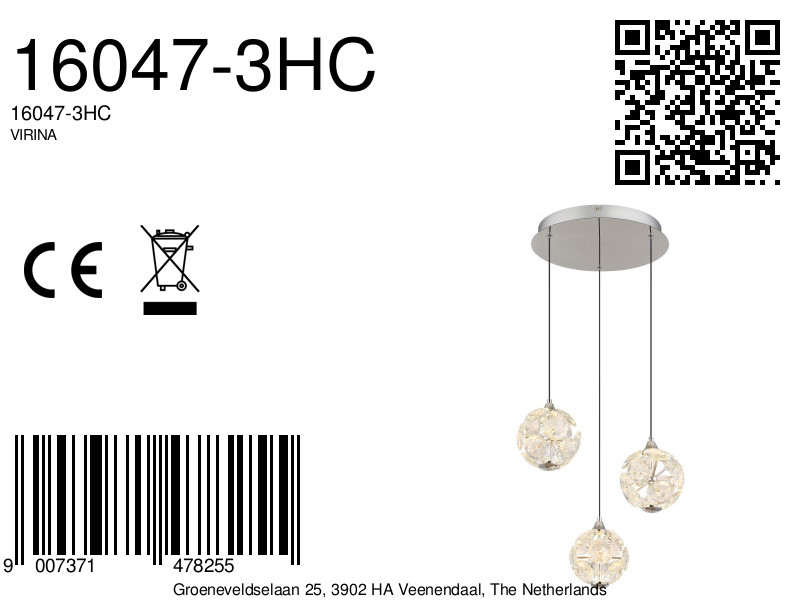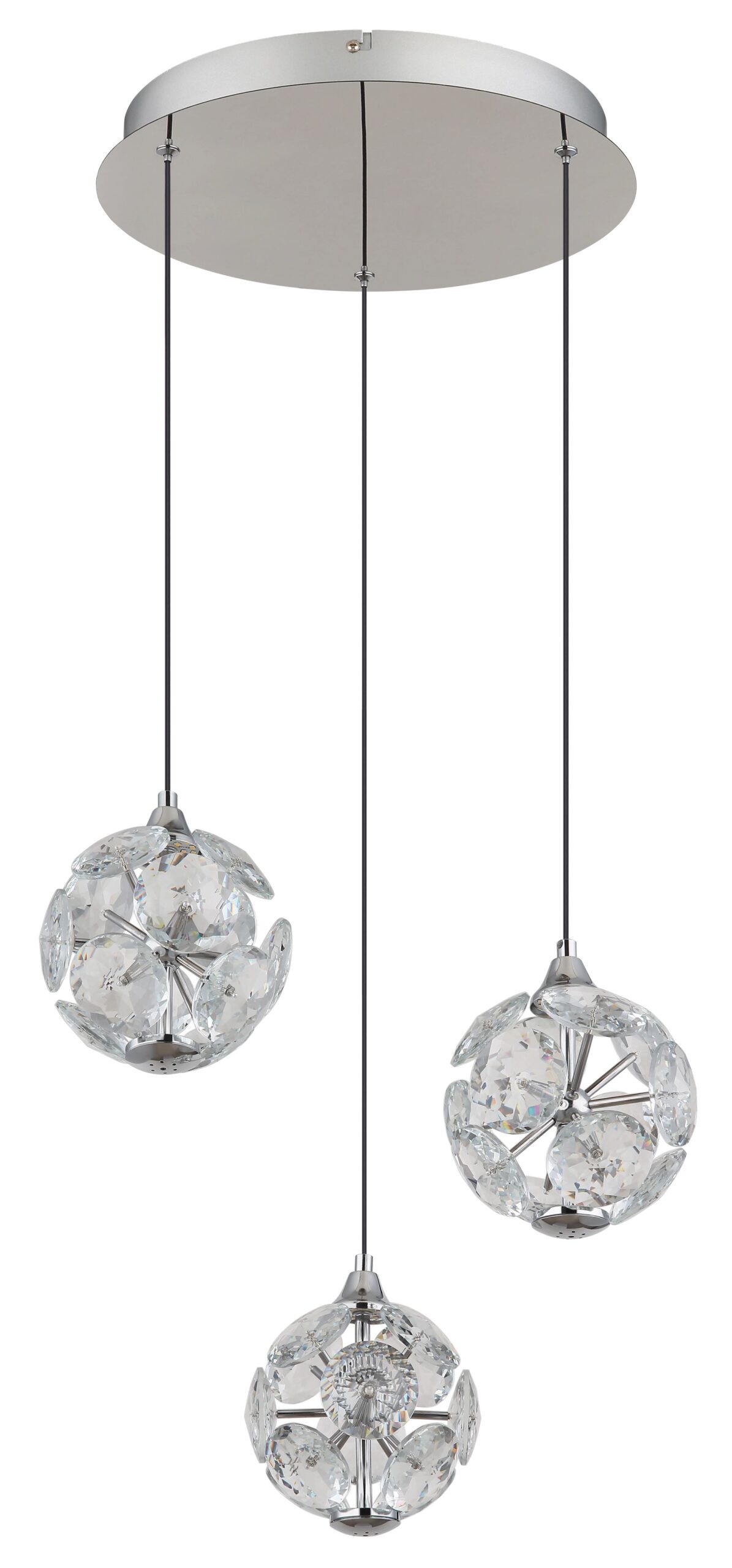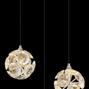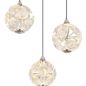 De VARINA hanglamp is een perfecte combinatie van elegant design en uitstekende lichtkwaliteit. Met een verchroomde metalen structuur en sprankelende K9 kristallen voegt deze lamp een moderne luxe toe aan iedere ruimte. De zwarte PVC-kabel zorgt voor flexibiliteit in de hoogte, die tot 1500 mm kan worden aangepast. Met een diameter van 420 mm is de VARINA een opvallend element dat elke kamer verrijkt.