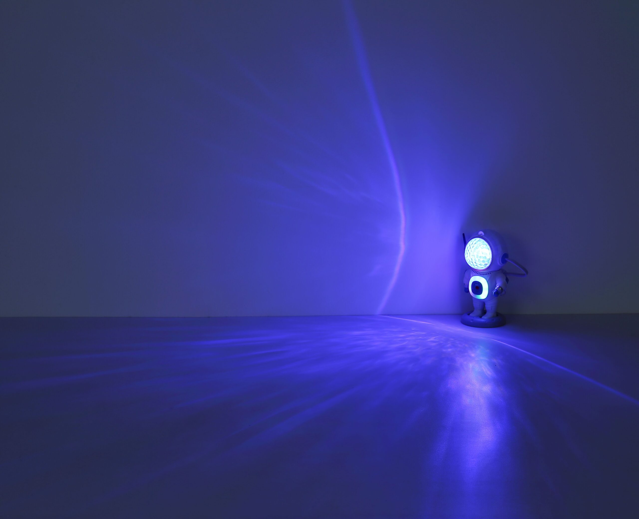 De COSMO tafellamp met het schattige astronautenontwerp is een echte eye-catcher voor iedere kinderkamer of creatieve werkplek. Het gedetailleerde lijf van de lamp, uitgevoerd in wit, grijs en blauw, gaat perfect samen met de heldere lampenkap die is versierd met rode en zilveren accenten. Dit geeft je interieur een futuristische uitstraling en creëert een unieke sfeer. Dankzij de ingebouwde RGB LED kun je moeiteloos een breed scala aan kleuren kiezen met één druk op de knop. Dit maakt de lamp ideaal als nachtlampje of voor sfeervolle verlichting.