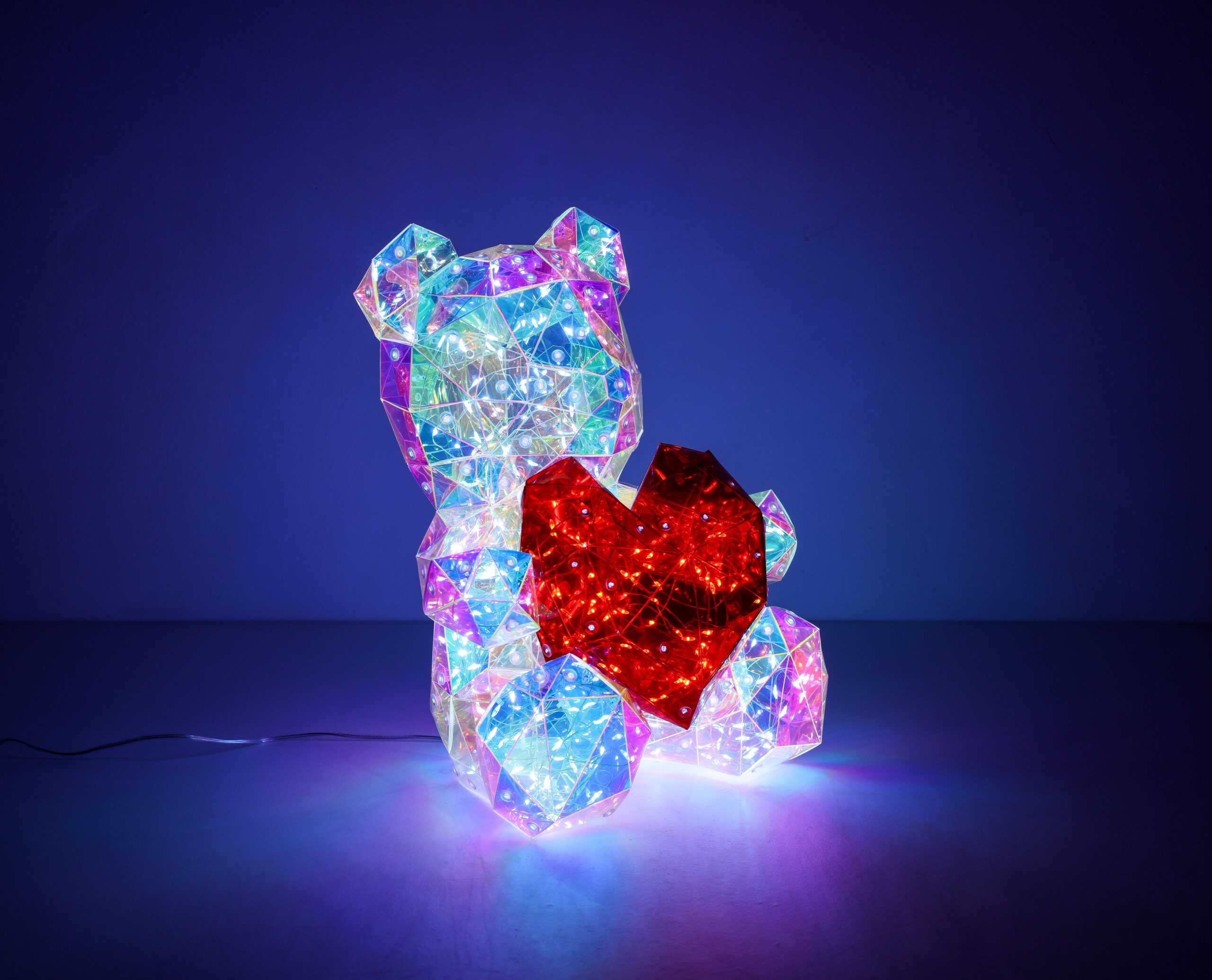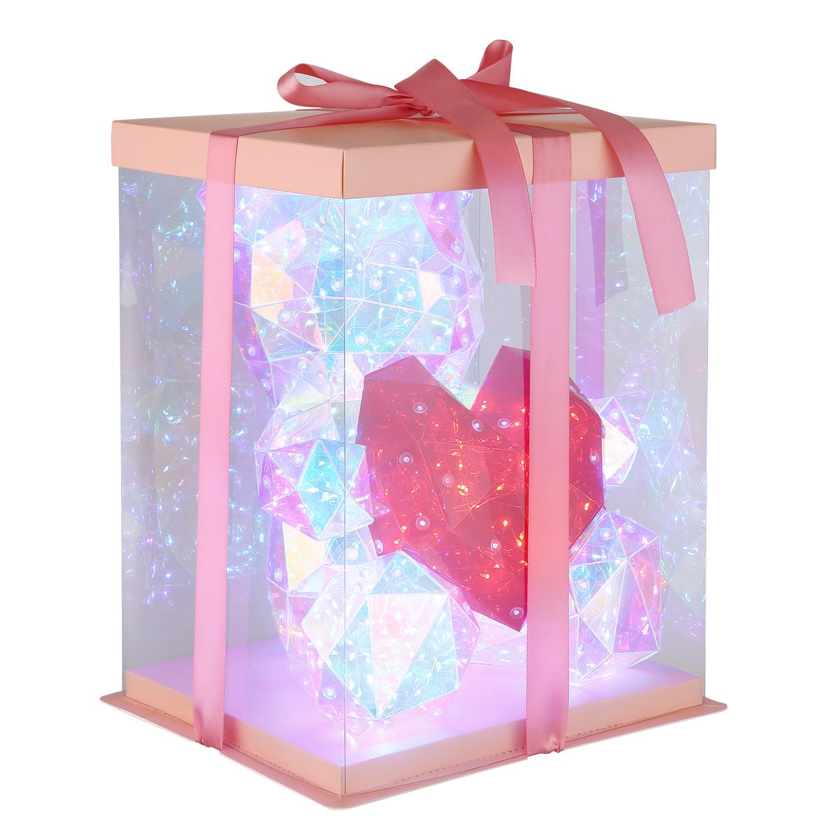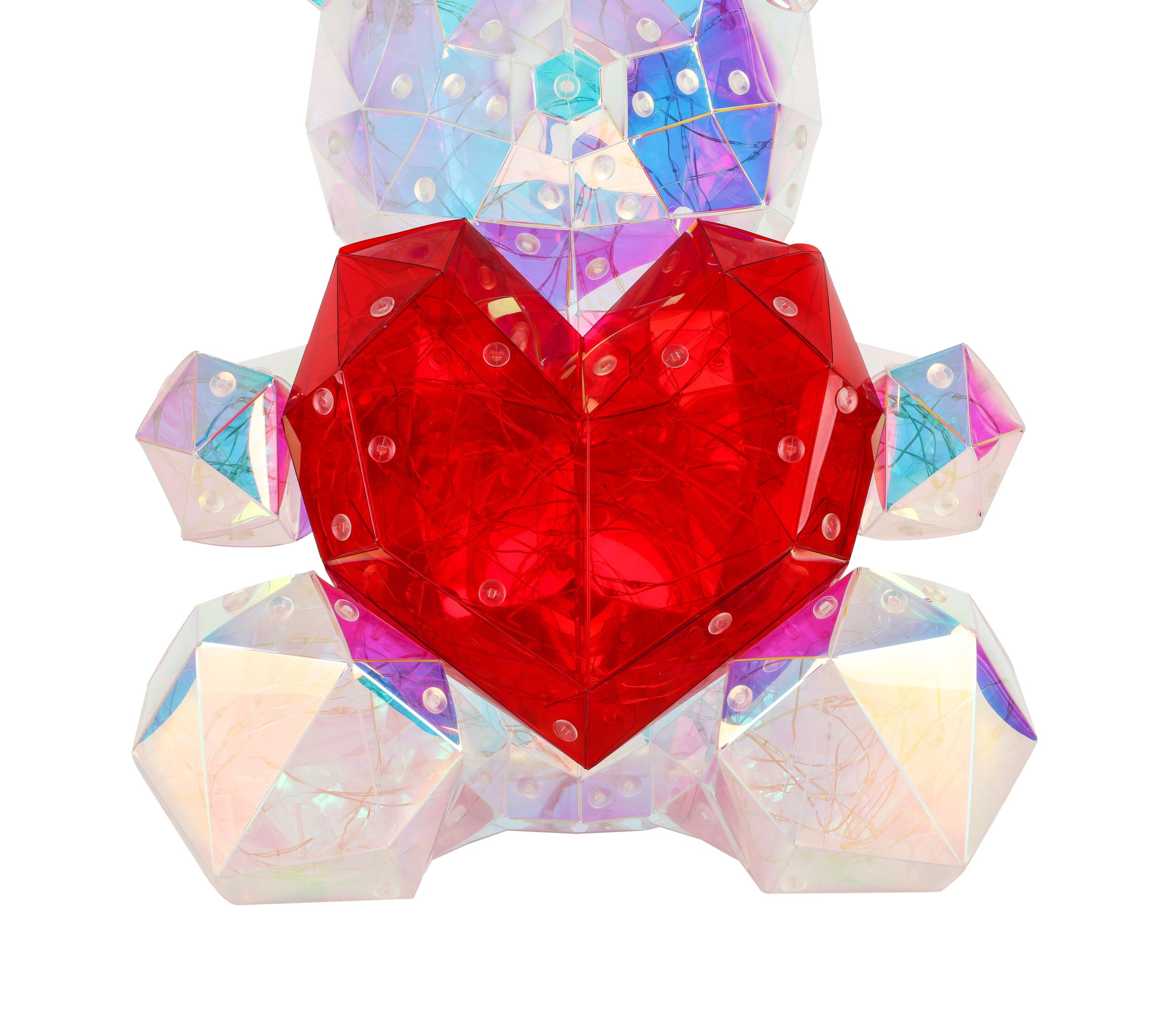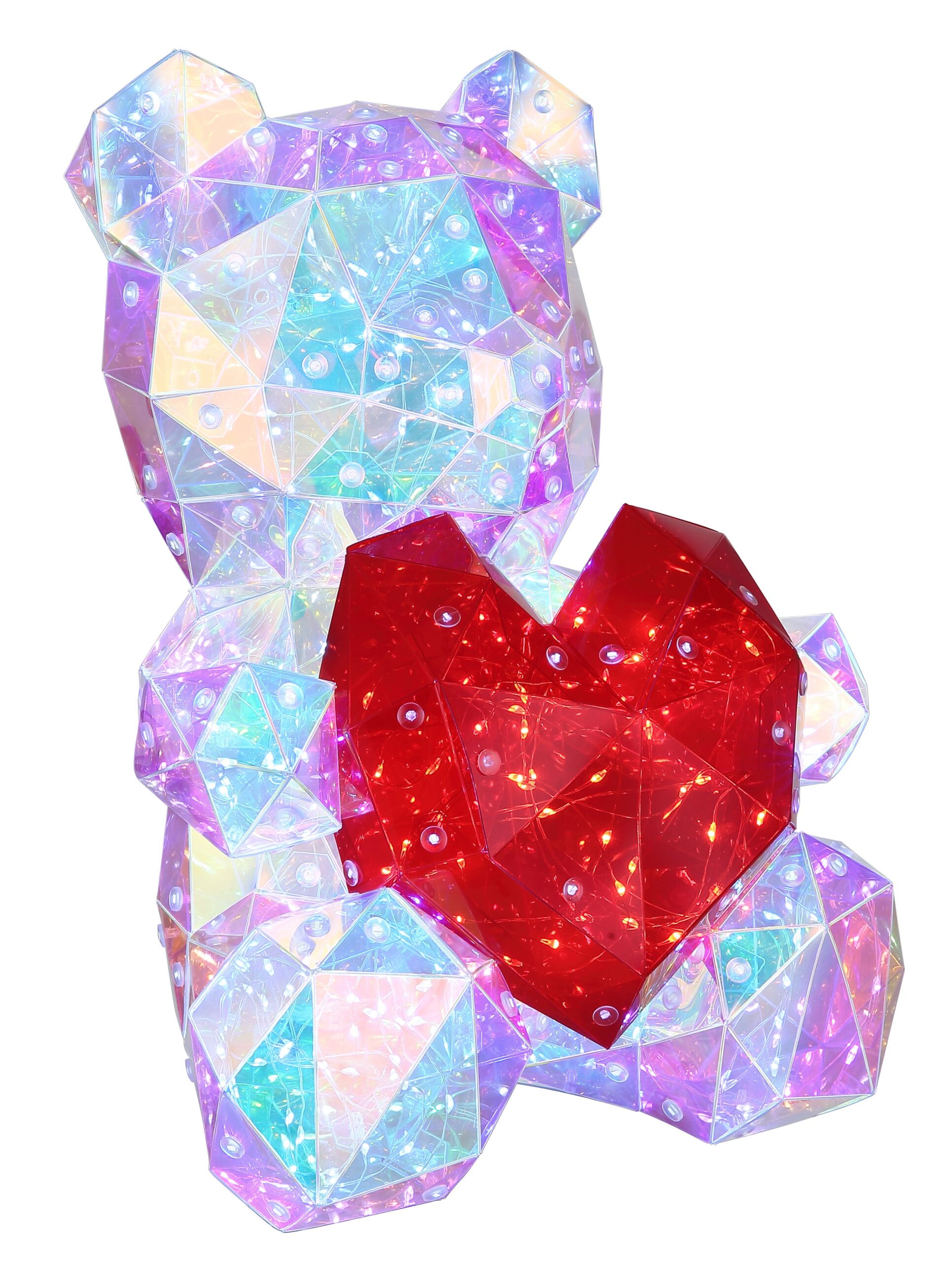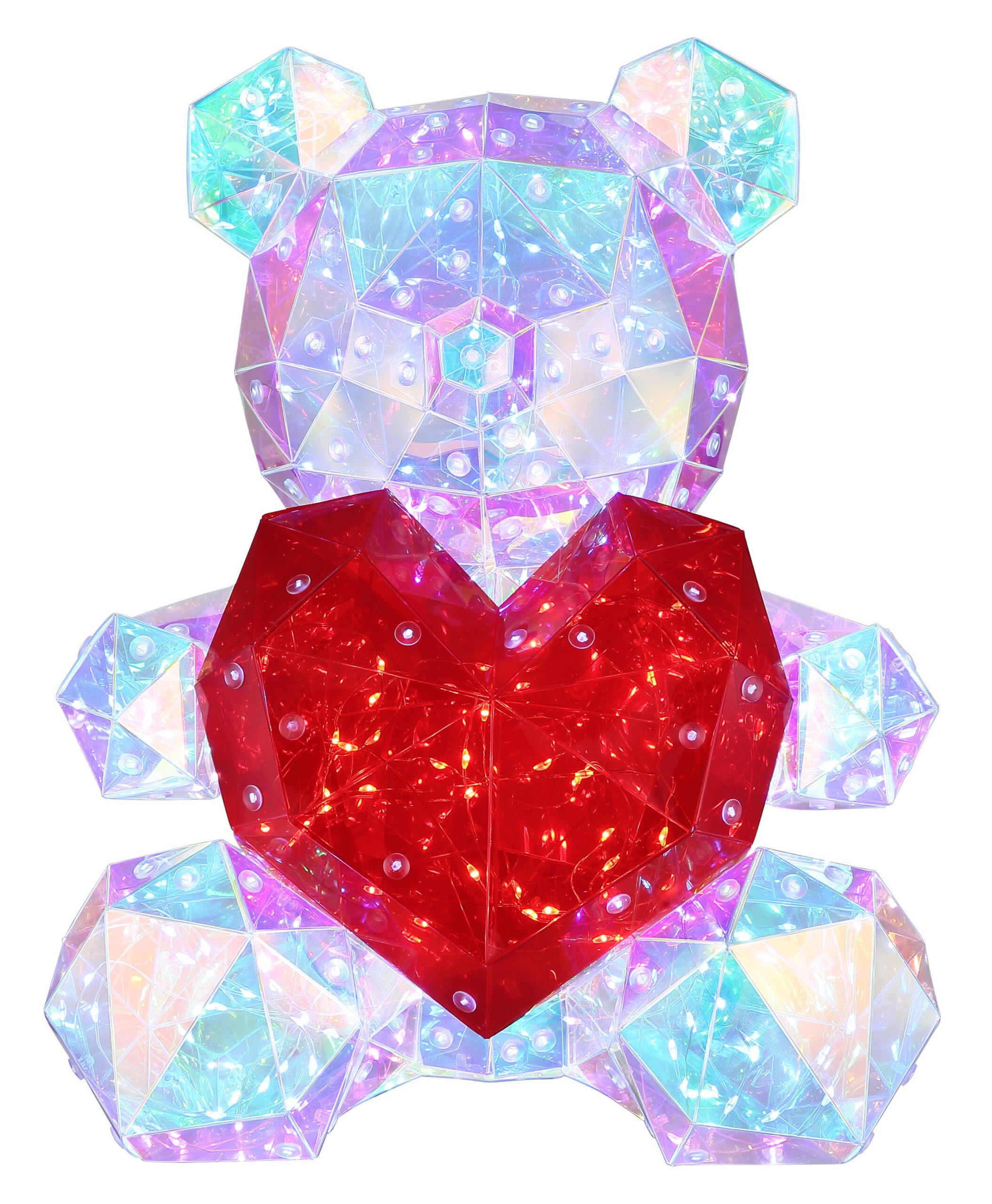 Deze schattige tafellamp in de vorm van een beer met een kristallook hart is een betoverende aanvulling voor elke kamer. Gemaakt van helder plastic met een kristaleffect zorgt deze lamp ervoor dat het licht op een sprankelende manier wordt verspreid. De rood plastic kap geeft de lamp een speelse uitstraling, perfect voor zowel kinderkamers als gezellige woonruimtes. Voor gebruiksgemak is er een praktische wisselschakelaar op de kabel aanwezig, zodat u de lamp eenvoudig kunt aan- en uitzetten.