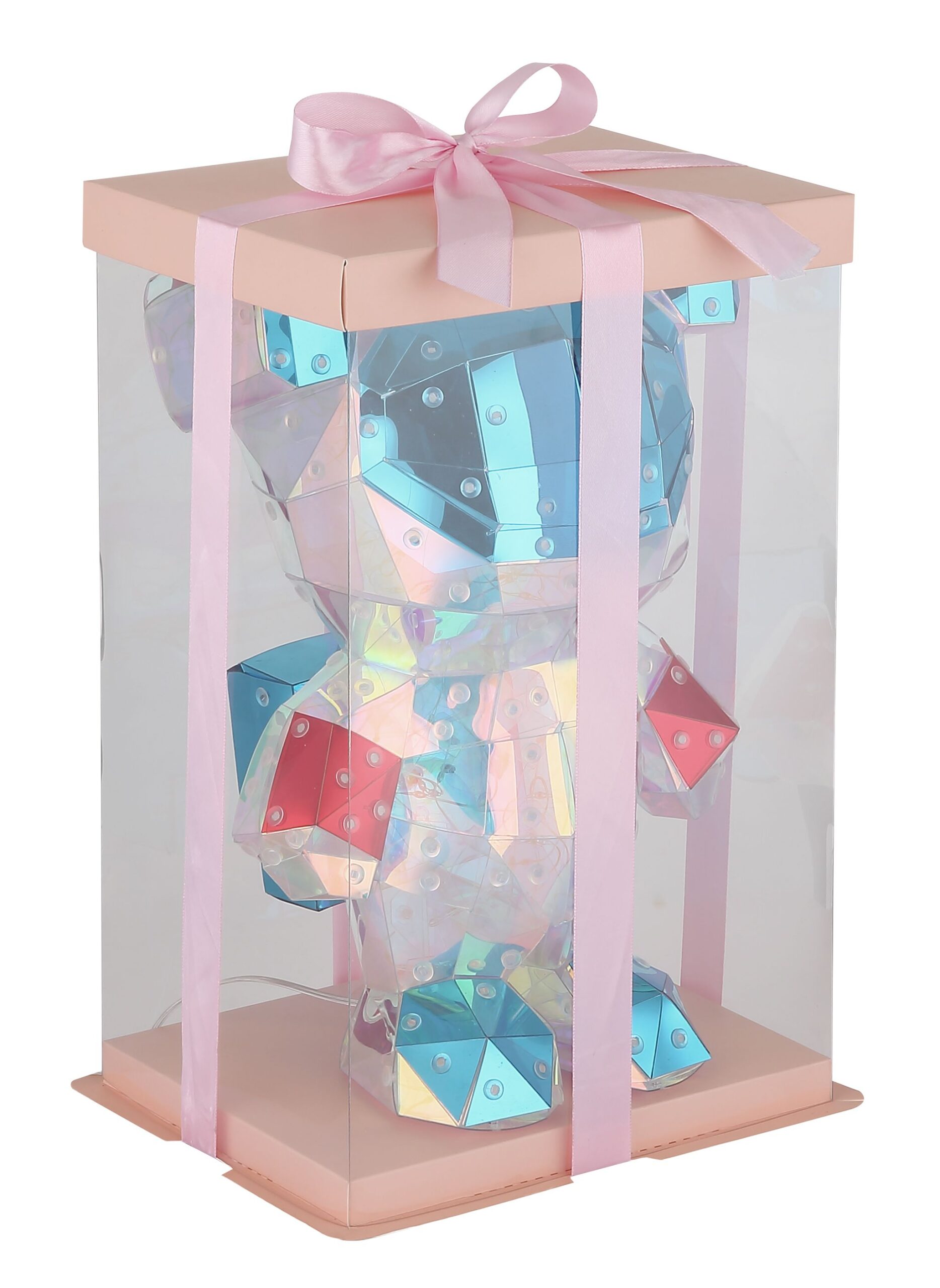 De BRONDAR tafellamp is een ware blikvanger met zijn speelse ontwerp en stijlvolle kristaloptiek. De lamp heeft de unieke vorm van een astronautenbeer, wat een galactische charme toevoegt aan elke kinderkamer of creatieve woonomgeving. Het lichaam van de lamp, vervaardigd uit helder en rookkleurig plastic met een kristaleffect, biedt een verfijnde diepte en zorgt voor bijzondere lichtreflecties. De opvallende rode en blauwe kap, die ook een kristaleffect heeft, voegt kleurrijke accenten toe en maakt van de lamp een echt statement item.