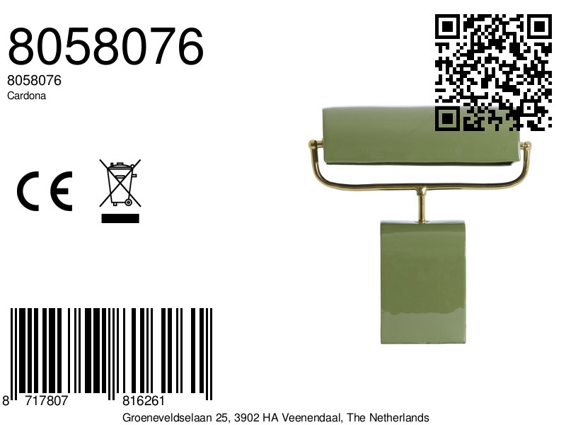De Cardona tafellamp in lichtgroen met goud is een speels en stijlvol ontwerp. De retro look in combinatie met de frisse kleur maakt hem tot een echte blikvanger. De gouden details geven hem een luxe uitstraling. Ideaal als bureaulamp of als vrolijk accent in de woonkamer.De lamp is 38 cm hoog en meet 35 bij 15,5 cm. Hij is gemaakt van metaal en heeft een E27 fitting. De lamp wordt geleverd zonder lichtbron zodat je zelf de lichtkleur en sterkte kunt bepalen. Hij is dimbaar in combinatie met een 4-staps lichtbron en snoerschakelaar. De bediening gaat via de schakelaar in het snoer. Met de IP20 classificatie is hij geschikt voor binnengebruik. Inclusief snoer en 2 jaar garantie.
