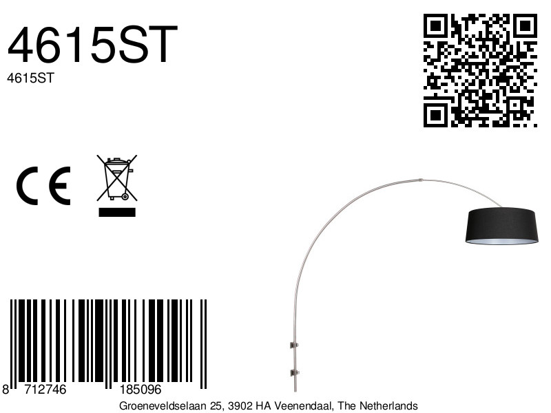 De zwarte linnen lampenkap met een onderdiameter van 48 cm, bovendiameter van 44 cm en een hoogte van 19 cm geeft deze booglamp een krachtige, eigentijdse uitstraling. De licht taps toelopende vorm en de combinatie van zwarte stof met een witte binnenzijde zorgen voor een strak maar warm lichteffect. Perfect als statement boven de eettafel, naast de bank of als stijlvolle eye-catcher in een moderne woonkamer.