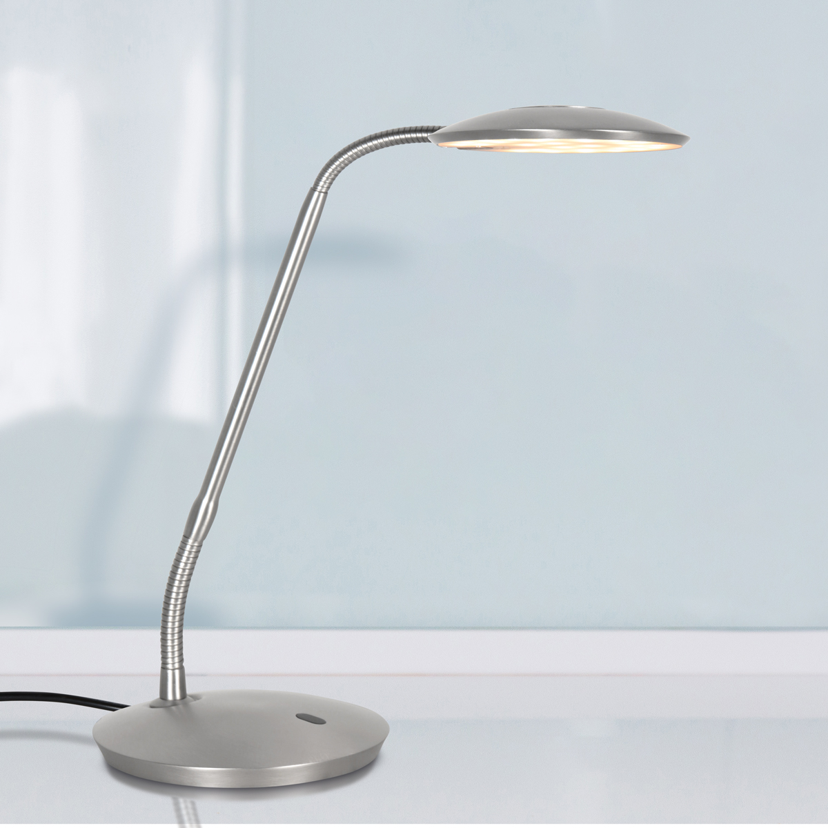 De geïntegreerde ledmodule van 8 watt levert 1040 lumen met een hoge CRI van 90 voor natuurgetrouw licht. Daarnaast stel je de lichtkleur flexibel in van 2200 tot 4000 Kelvin, waardoor de lamp zowel geschikt is voor sfeervol avondlicht als helder werklicht. Met de pushdimmer op de voet of de meegeleverde afstandsbediening pas je het licht comfortabel aan op elk moment van de dag.