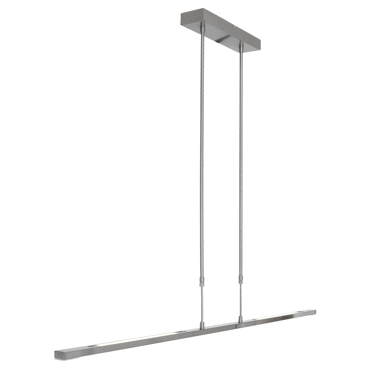 Deze stalen hanglamp uit de Zelena-serie biedt een combinatie van stijl en functionaliteit. De lamp is uitgerust met drie lichtpunten, waaronder twee LED-strips van 2 x 4 watt (800 lumen) en één LED-strip van 17 watt (1700 lumen). De lichtkleur is instelbaar van 2200 tot 4000 Kelvin en dimbaar via de pushdimmers aan beide zijden. Tijdens montage kan de hoogte worden aangepast tussen 82 en 117 cm, met een lengte van 122 cm en een breedte van 3 cm. Deze hanglamp van het merk Steinhauer wordt geleverd met 2 jaar garantie.