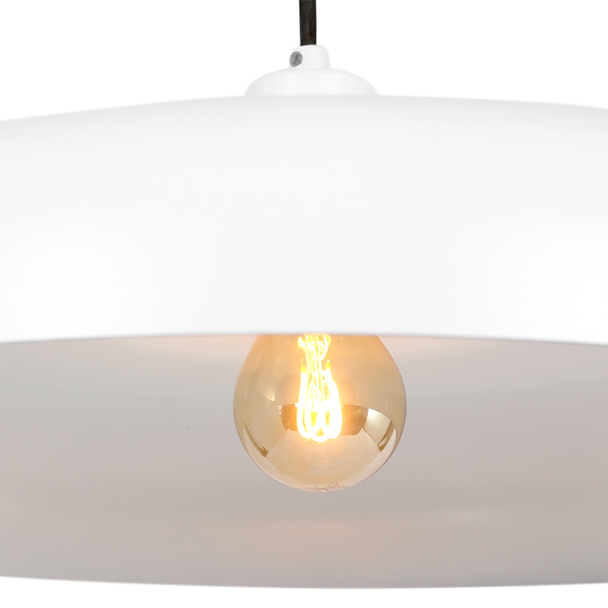 De witte hanglamp uit de Krisip-serie is een stijlvolle blikvanger met een platte schotelvorm van 55 cm in diameter. De lamp hangt aan een zwart strijkijzersnoer dat verstelbaar is van 40 tot 170 cm. Geschikt voor een E27-lichtbron tot 60 Watt (niet inbegrepen). Dankzij de mogelijkheid om een dimbare lichtbron te gebruiken, is de lamp eenvoudig te combineren met een externe dimmer.