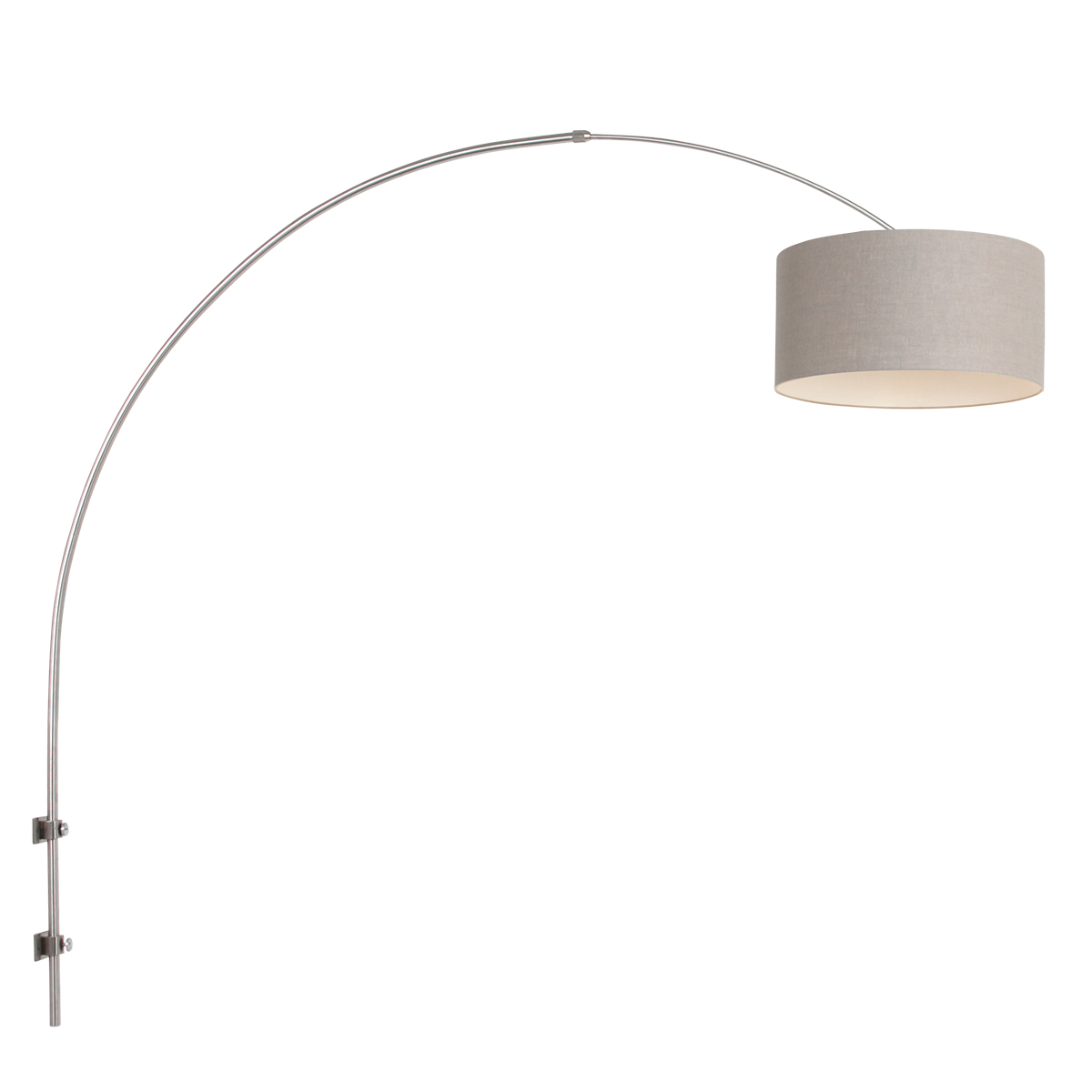 Deze design wandlamp straalt rust en klasse uit. De grijze linnen kap verzacht de lichtinval en creëert een aangename sfeer, terwijl het metalen frame zorgt voor een moderne uitstraling. De grote boog maakt deze lamp niet alleen stijlvol, maar ook functioneel, ideaal voor verschillende interieurstijlen.