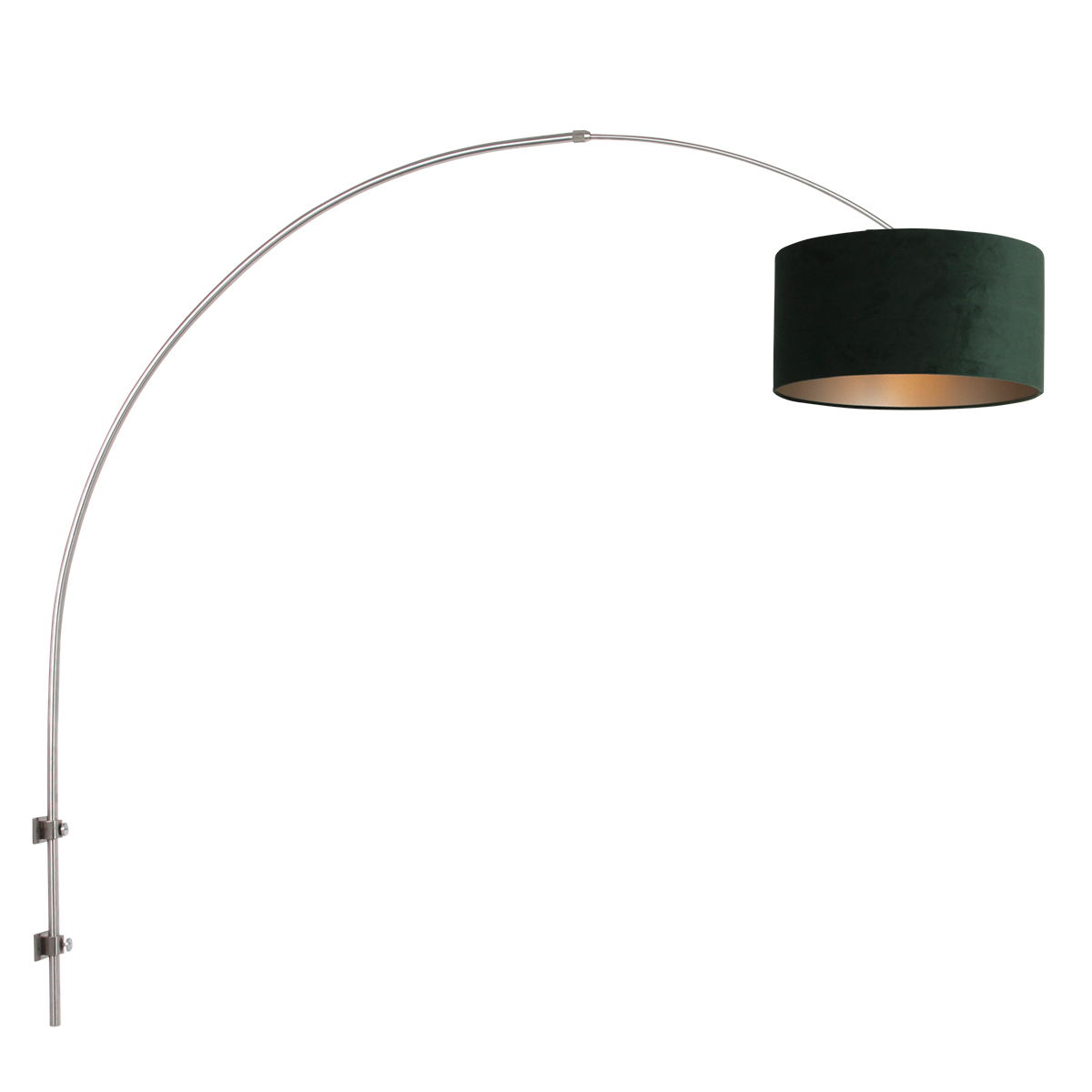 De combinatie van stoer metaal en zacht fluweel geeft deze wandlamp een luxe uitstraling. De groene velours kap zorgt voor een warme lichtverspreiding en past perfect in zowel een modern als een klassiek interieur. Een stijlvolle keuze voor wie karakter aan de ruimte wil toevoegen.