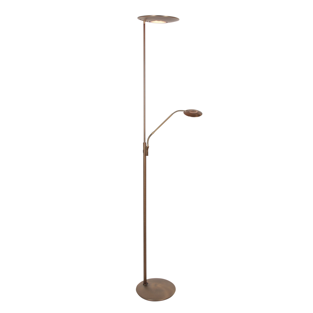 De Steinhauer Zenith 2 vloerlamp in brons combineert luxe uitstraling met veelzijdige verlichting. Het slimme ontwerp met krachtige uplight en verstelbare leesarm maakt deze lamp perfect voor zowel sfeervolle indirecte verlichting als gericht leeslicht. De warme bronzen kleur sluit prachtig aan bij moderne en klassieke interieurs.