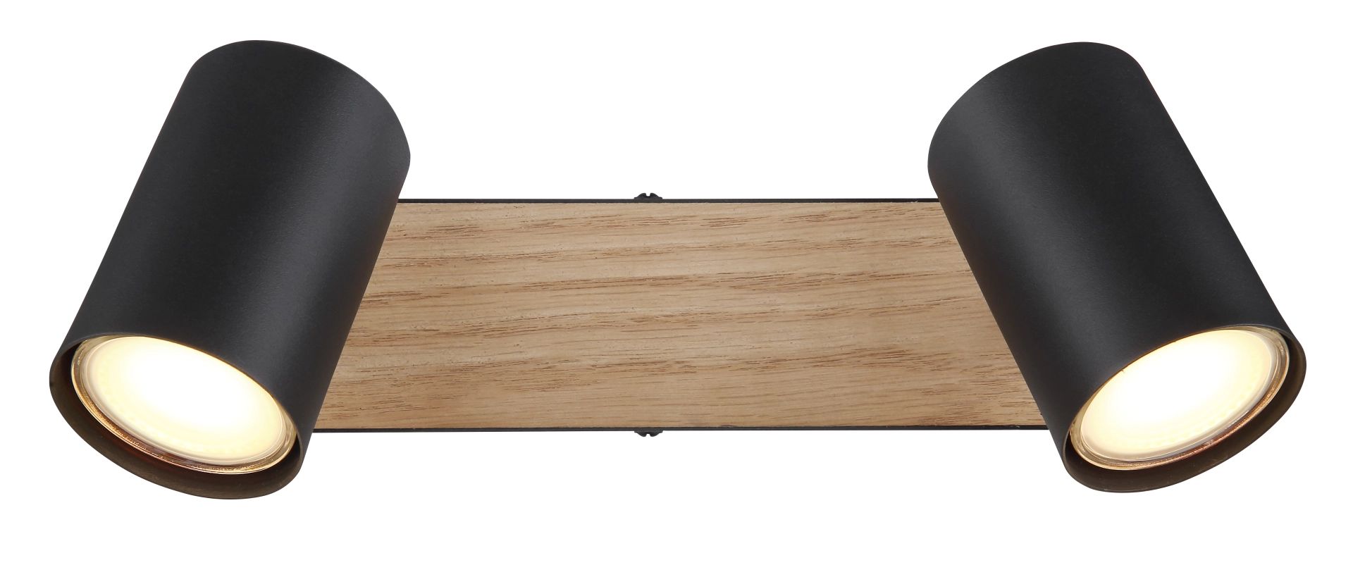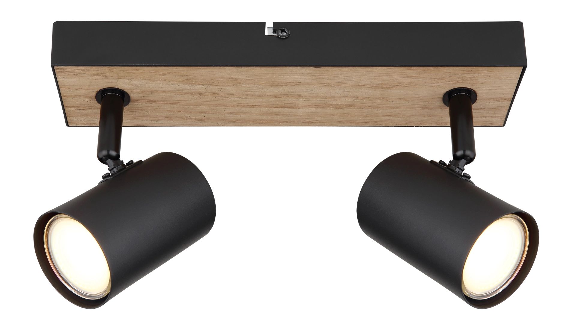 Ontdek de tijdloze elegantie van de Robby serie met deze stijlvolle spotlight. Dit armatuur beschikt over een rechthoekige plafondbeugel, uitgevoerd in matte zwarte metaal en MDF met een houtlook, met afmetingen van 26 x 6 cm. De twee GU10-fittingen zijn beschermd door cilindervormige kappen, waardoor de spotlight niet alleen functioneel maar ook esthetisch aantrekkelijk is. Met een vermogen van maximaal 35 watt heb je de flexibiliteit om zelf andere lampen te kiezen die passen bij jouw interieur.
