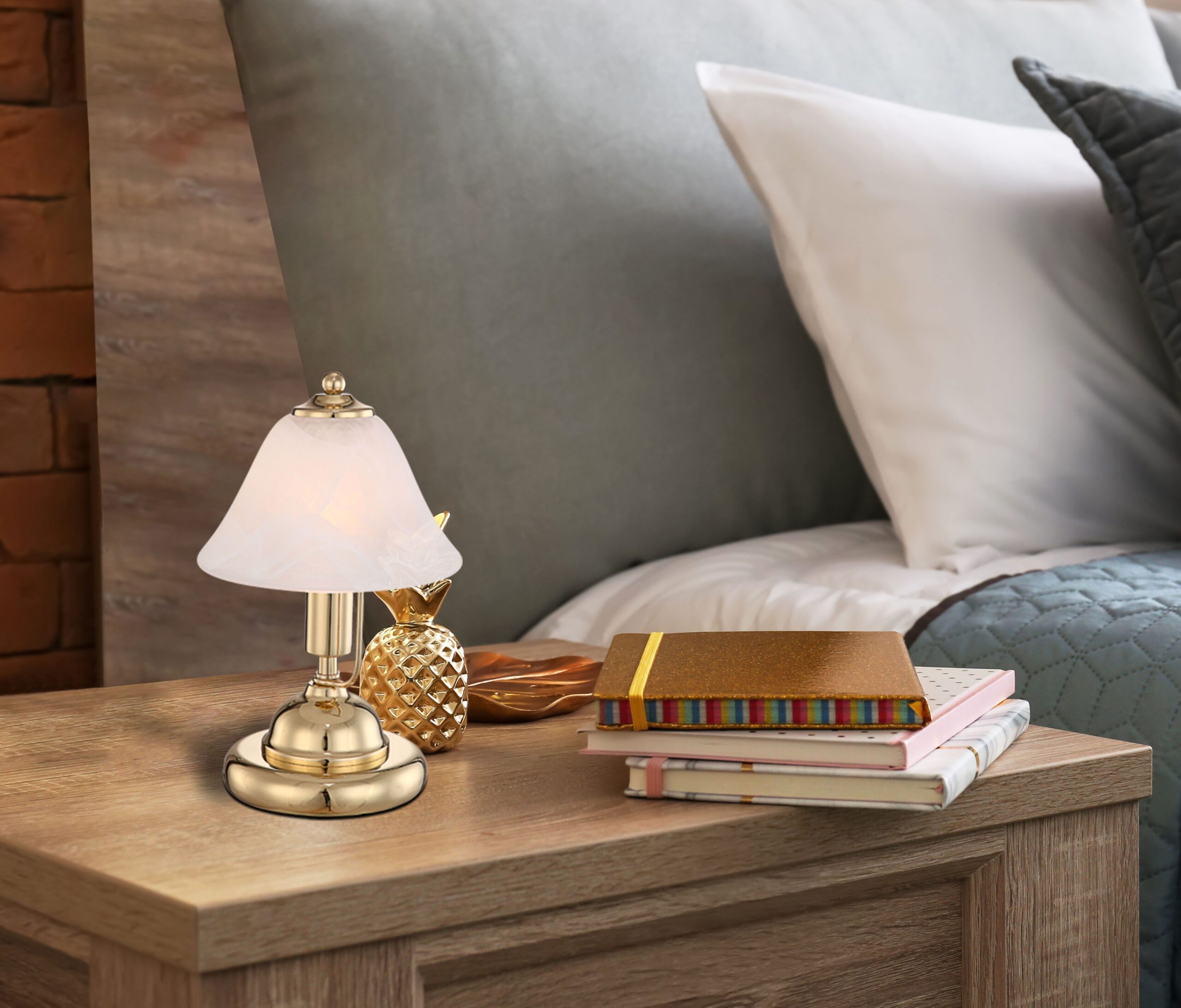 Deze stijlvolle tafellamp is een perfecte aanvulling voor je interieur dankzij het fraaie messing-look frame en het elegante ontwerp. Ze verhoogt de sfeer in elke ruimte met haar warme licht, waardoor een aangename ambiance ontstaat. Dit model accentueert de inrichting en is ideaal voor wie op zoek is naar een lamp die zowel esthetisch als praktisch is.