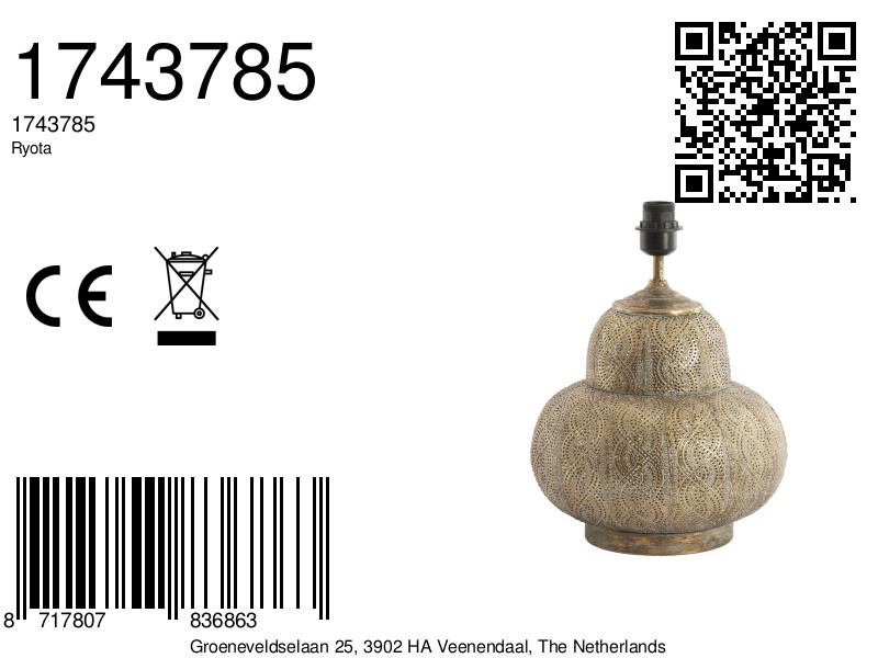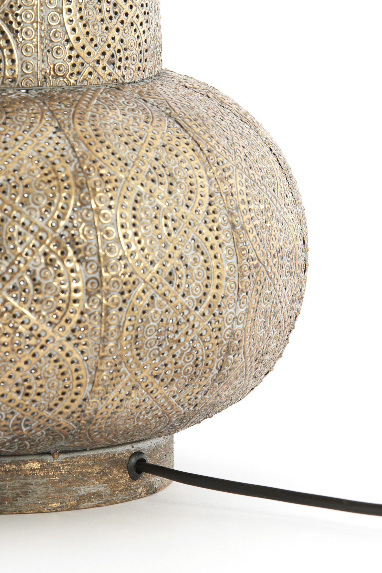De Light & Living tafellamp Ryota in bruin goud heeft een warme en moderne uitstraling die moeiteloos sfeer toevoegt aan je interieur. Met een diameter van 31 cm en een hoogte van 41 cm heeft de lamp een stijlvol en compact formaat, perfect voor de woonkamer, slaapkamer of hal. De combinatie van bruin en goud in het stevige metalen materiaal geeft de lamp een luxe en eigentijdse look. Uitgerust met een E27 fitting en geleverd zonder lichtbron heb je de vrijheid om zelf een dimbare of energiezuinige variant te kiezen. Bediening gaat eenvoudig via de snoerschakelaar en de lamp is dankzij IP20 geschikt voor binnengebruik.