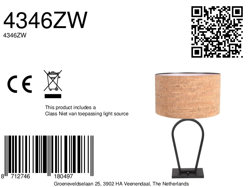 De Stang 4346ZW tafellamp combineert een strak zwart armatuur met een royale kurken kap van 40 cm diameter. Het karaktervolle kurk zorgt voor een warme lichtuitstraling en brengt een natuurlijk accent in het interieur, terwijl de zwarte voet een modern en krachtig contrast vormt. Met een totale hoogte van 71 cm is deze lamp perfect voor dressoirs, nachtkastjes of een prominente plek op een bijzettafel.