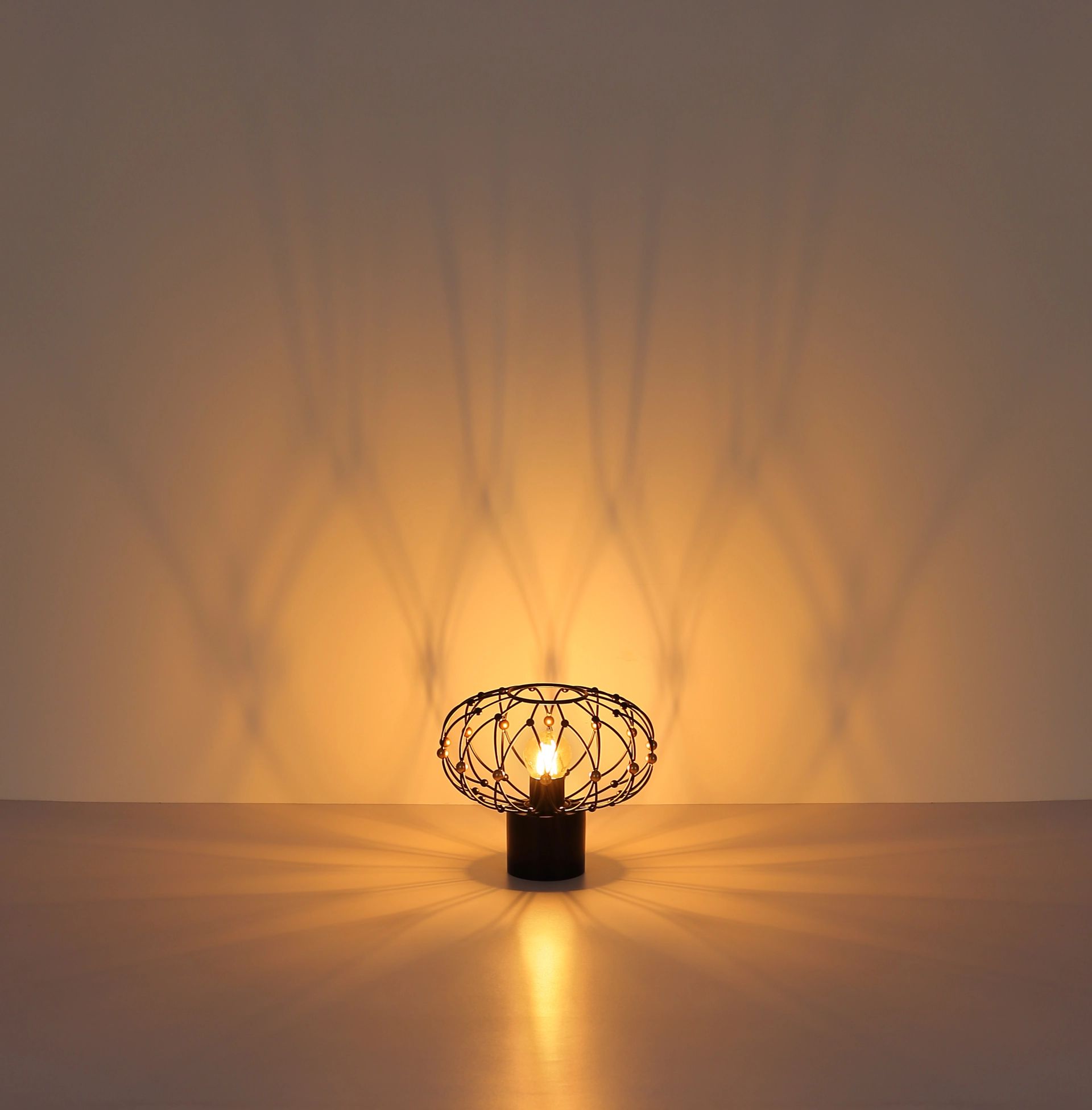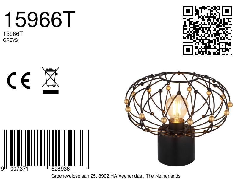 De GRAYS tafellamp in vintage stijl brengt een elegante flair in uw interieur. Met een ronde metalen mesh kap in matte zwart en gouden decoratieve bollen creëert deze lamp een warme, uitnodigende sfeer in elke ruimte. Het zwarte metalen frame sluit naadloos aan bij de verfijnde details van de kap, wat het geheel een chique uitstraling geeft. Dankzij de praktische wipschakelaar op de kabel schakelt u de lamp eenvoudig in en uit.