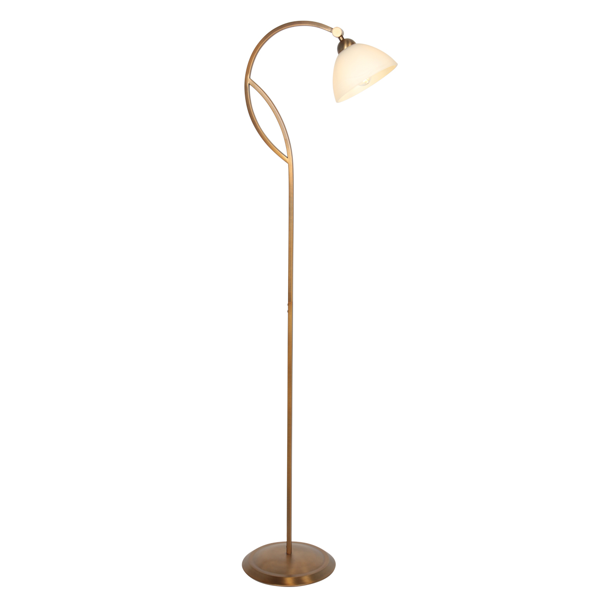 De Anthea 4330BR is een klassieke vloerlamp met een bronzen armatuur en een sierlijke glazen kap in marmercrème. De kap heeft een diameter van ongeveer 17 cm en verspreidt een zachte, warme gloed die perfect past in landelijke, klassieke of tijdloze interieurs. Met een hoogte van 140 cm en een voetdiameter van 25 cm staat de lamp stevig en oogt hij tegelijk slank en elegant.
