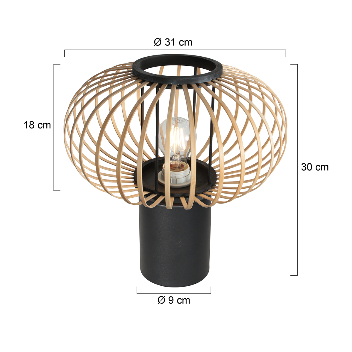 Zwart tafellampje met grote bamboekap Steinhauer Bloeba