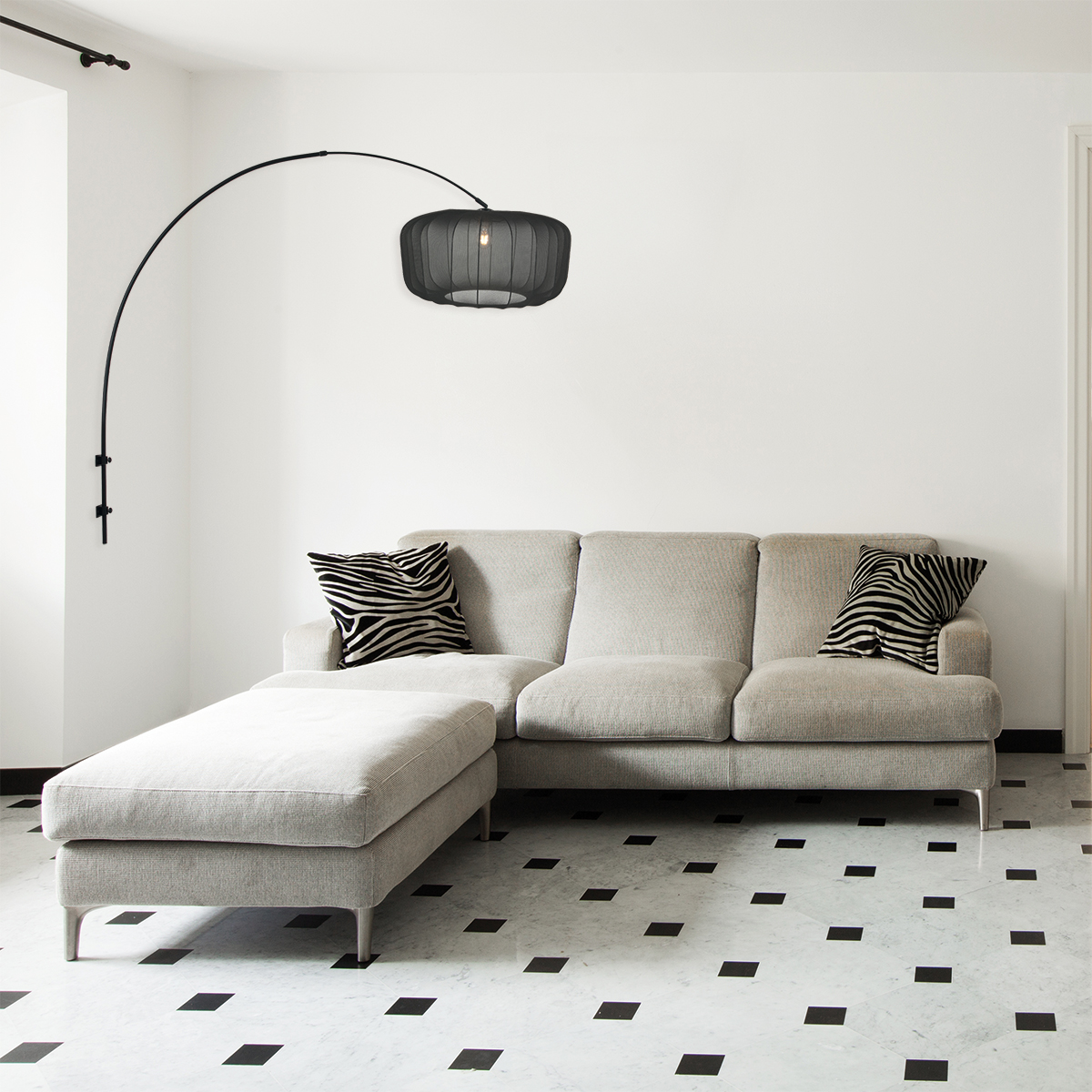 Deze zwarte boog wandlamp vormt een stijlvol geheel in combinatie met de royale ronde zwarte lampenkap van 60 centimeter breed en 30 centimeter hoog. Het armatuur is uitgevoerd in mat zwart metaal, voorzien van een E27 fitting en geleverd met een 200 centimeter snoer met schakelaar. De verstelbare boog heeft een dieptebereik van 115 tot 160 centimeter, waardoor je het licht perfect boven jouw zitplek, tafel of leeshoek richt.