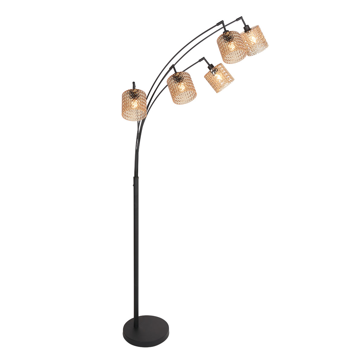Zwarte boogvloerlamp met vijf amberkleurige ribbelglazen Mexlite Ocre