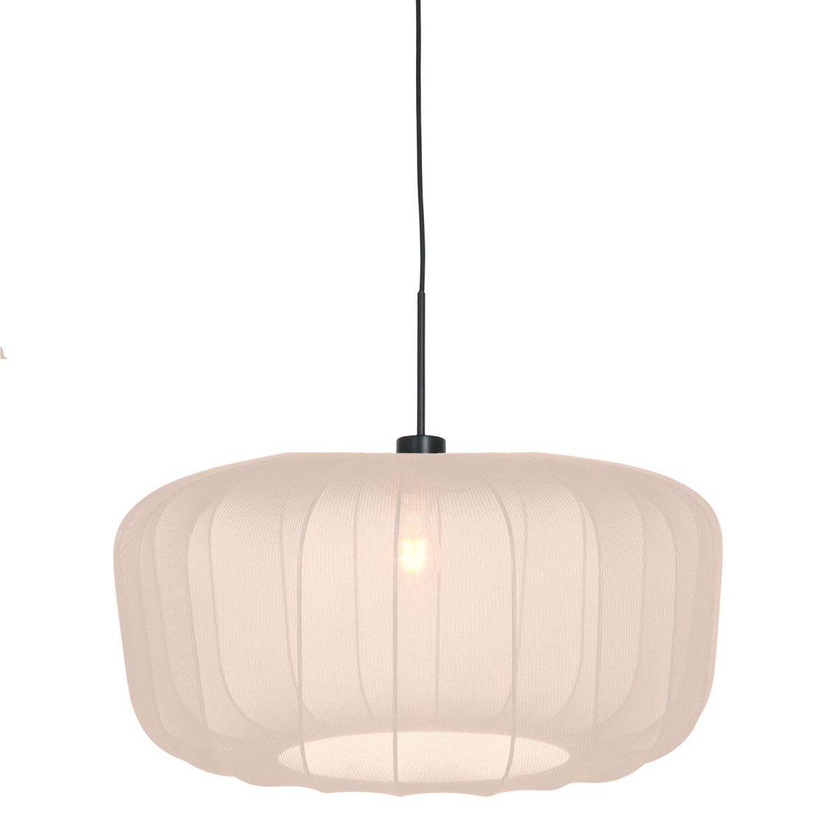 De zachte crèmekleurige stof zorgt voor een warme lichtspreiding en geeft een rustgevende sfeer aan de ruimte. Dankzij het royale formaat is deze combinatie ideaal boven de eettafel of in een ruime woonkamer. De lichte kleur houdt de ruimte luchtig en creëert een stijlvolle, tijdloze uitstraling.