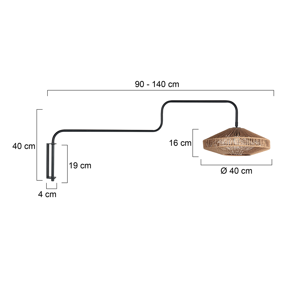 Deze zwarte wandlamp met lange zwenkarm en touwlampenkap biedt een stijlvolle mix van functionaliteit en natuurlijke charme. De lange arm maakt het mogelijk om het licht precies te richten waar je het nodig hebt, terwijl de gevlochten touwkap een warme en huiselijke sfeer creëert.